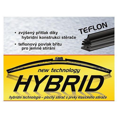 Stěrač hybridní konstrukce, nová technologie - plochý stěrač s prvky klasického stěrače.