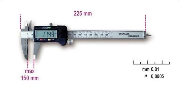 Posuvné měřidlo - měřítko pro přesná měření. Měřící výsledek je zobrazitelný v mm nebo Inch. Libovolná poloha nulových bodů umožňuje měření diferenční metodou.