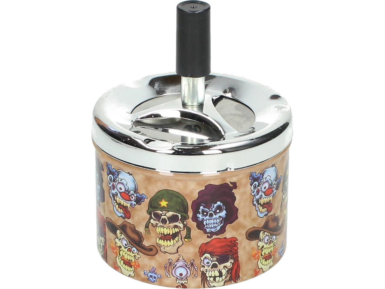 Krásný designový doplňek na stůl, pro kuřáky, nebo kuřácké návštěvy. Kovový popelník s veselým barevným motivem funguje na principu pístu. Po stlačení černé tyčky se popelník otevře a veškerý popel a nedopalky z cigaret se propadnou dovnitř do zásobníku. Po té co tyčku pustíte, popelník se sám zavře a utemní tak odpad z cigaret ve svých útrobách. Nic tak nikde nepadá, vítr nic nerozfouká a není nic cítit.