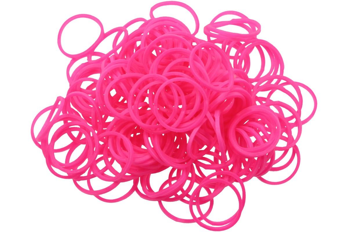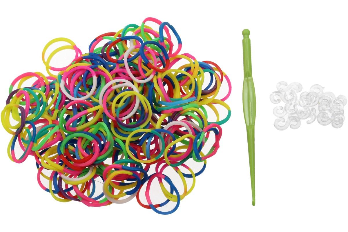 Pytlík obsahuje cca 200 ks gumiček pro ruční pletení náramků, háček a cca 10 ks spojek
