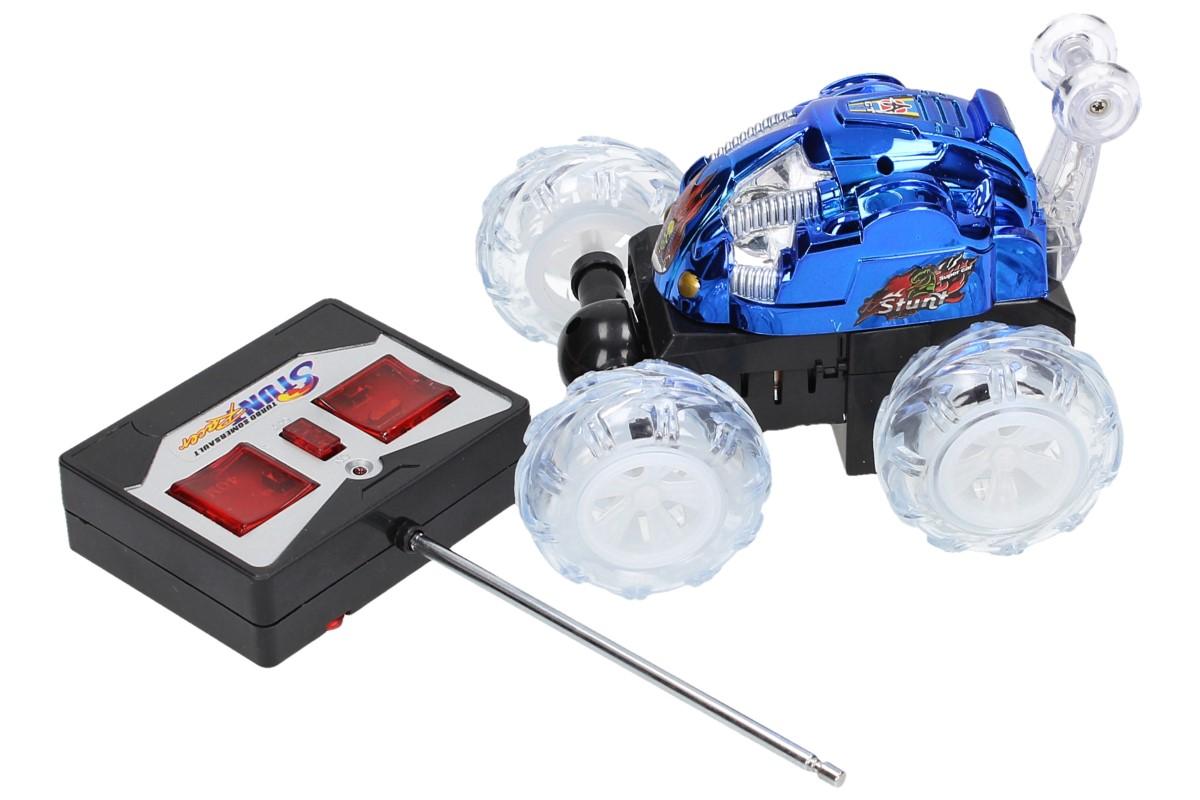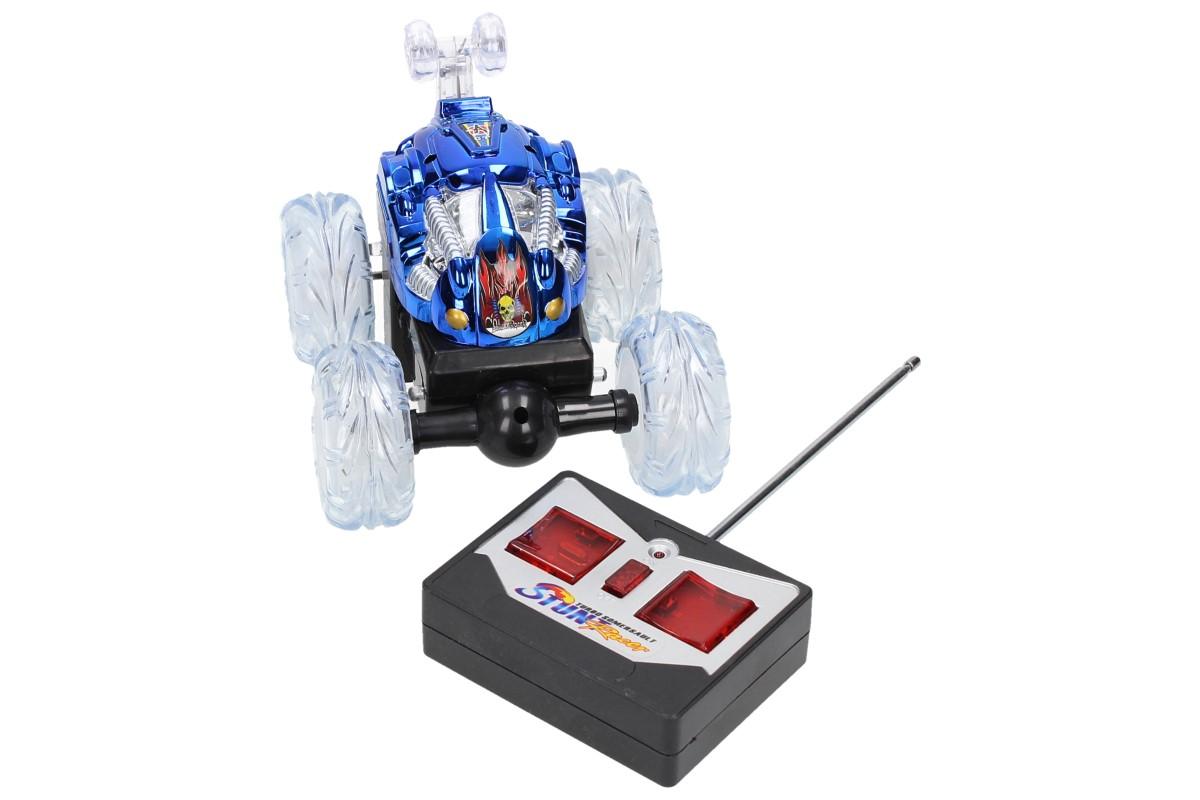 Barevné autíčko na dálkové ovládání má otočnou přední nápravu a jezdí ve všech polohách, je celé podsvícené.