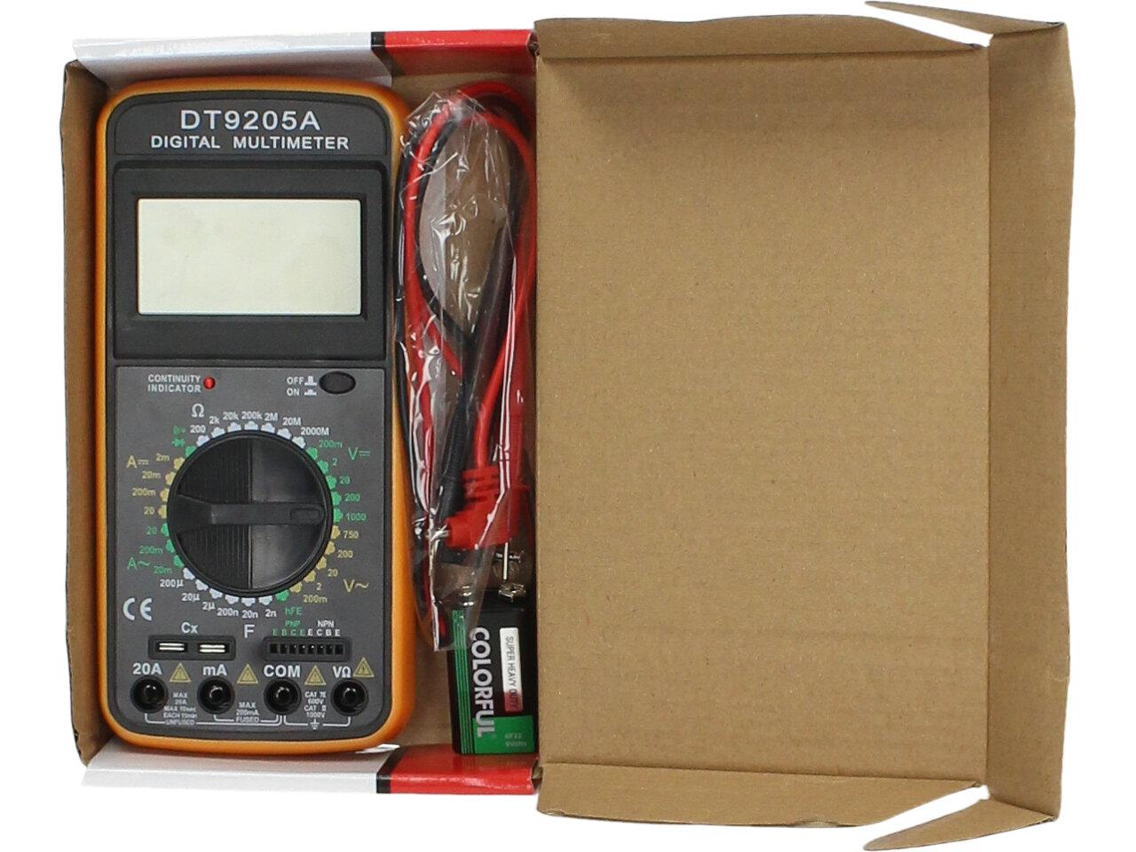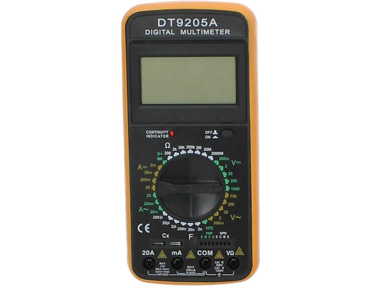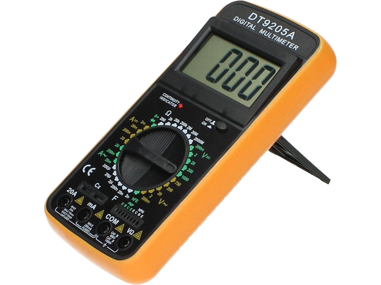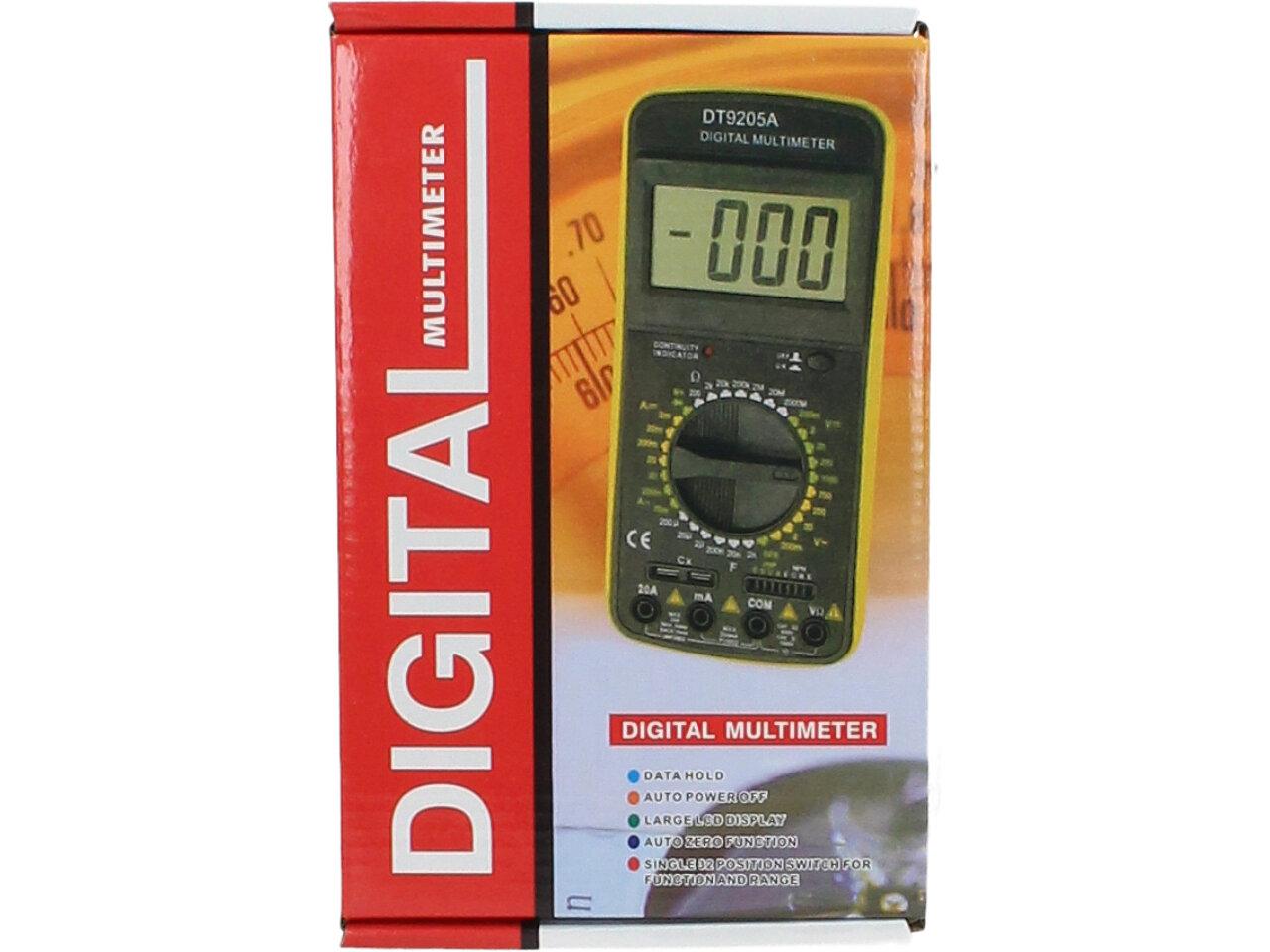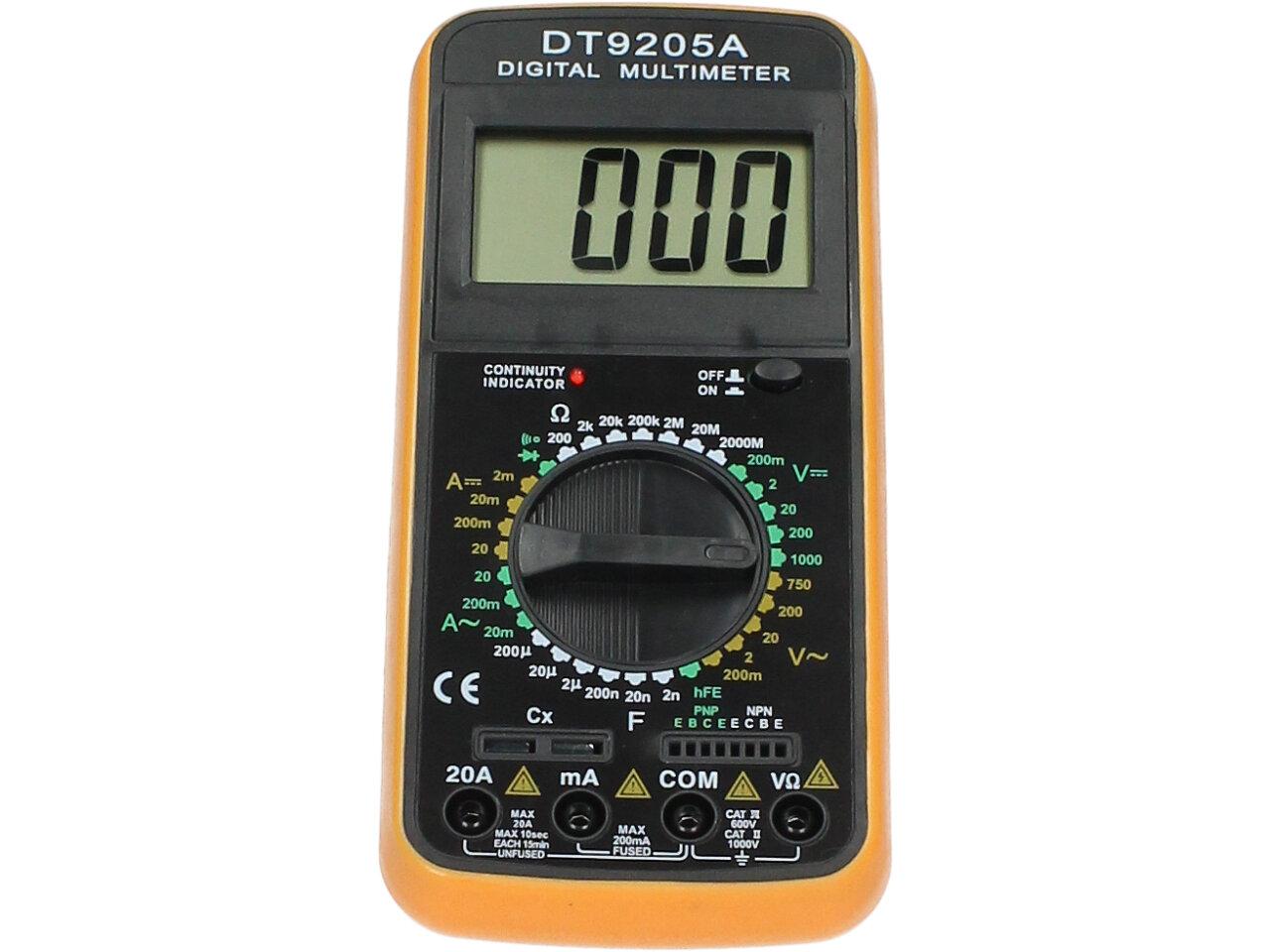 Akční multimetr pro domácí měření všech základních měřících el. veličin. Měřící přístroj je 3 1/2 místný DMM s manuálním přepínáním rozsahů. Velká výhoda tohoto přístroje je že měří proud AC DC do 20A. Dále měří stejnosměrné a střídavé napětí, el. odpor, test diod a tranzistorů. Vstupní impedance pro všechny rozsahy je 10MOhm. Součástí balení je baterie a měřící hroty. Není vhodný pro profesionální a laboratorní použití.