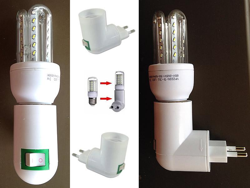 Tento zásuvkový adaptér umožňuje použití žárovky E27 (například LED žárovky) přímo do zásuvky na 220V.