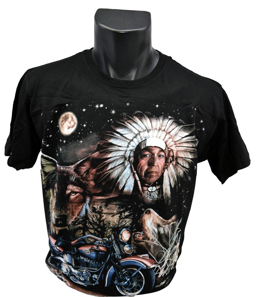 Tričko Indián s motocyklem je vhodné pro každodenní nošení do zaměstnání nebo za zábavou. Vtipné tričko je vyrobeno ze 100% bavlny a jeho velikost splňuje klasickou konfekci. Tričko Indián s motocyklem je dodáváno pouze v černé barvě.