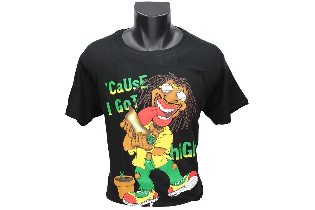 Tričko CaUse I got High je vhodné pro každodenní nošení do zaměstnání nebo za zábavou. Tričko CaUse I got High je vyrobeno ze 100% bavlny a jeho velikost splňuje klasickou konfekci. Tričko CaUse I got High je dodáváno pouze v černé barvě.