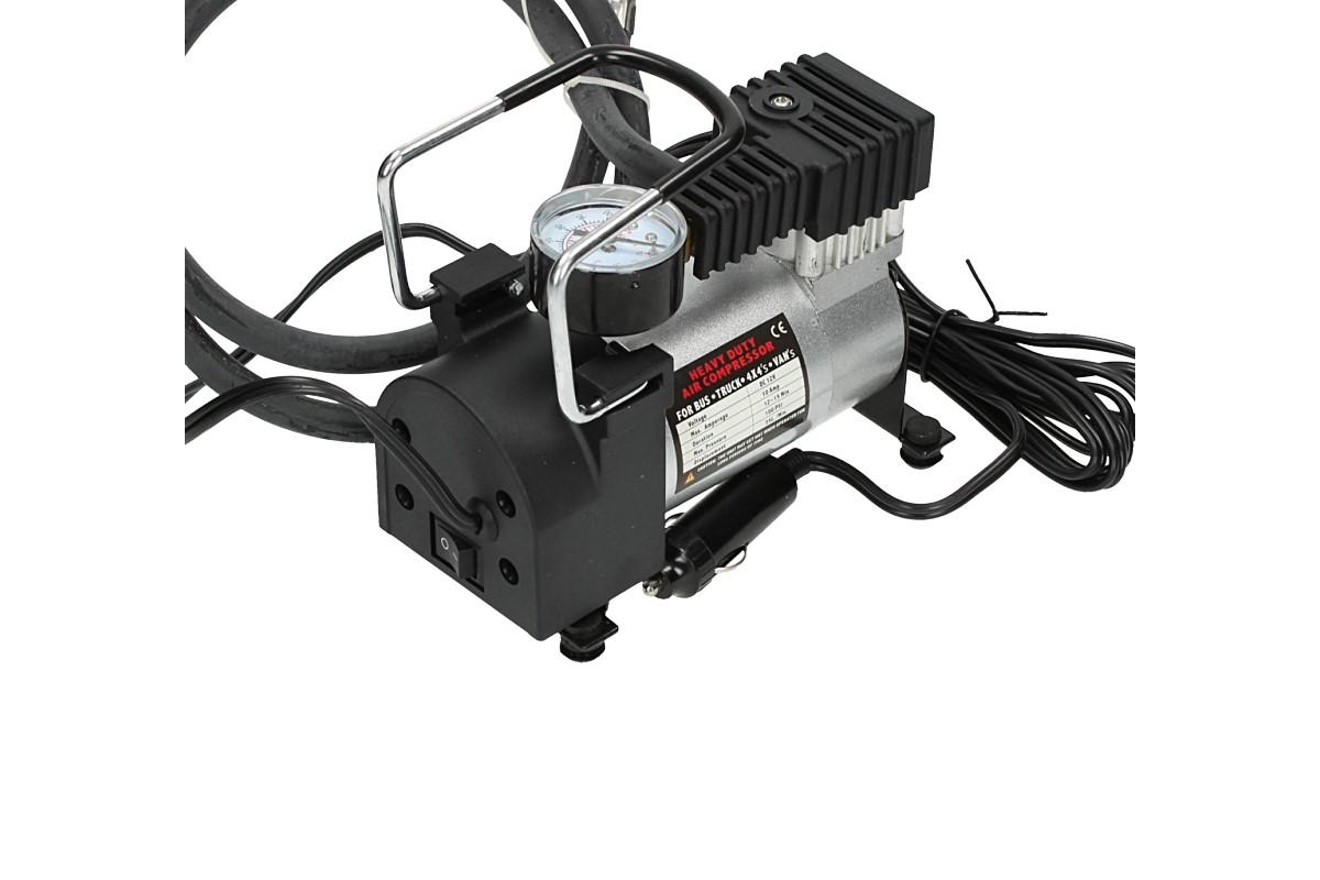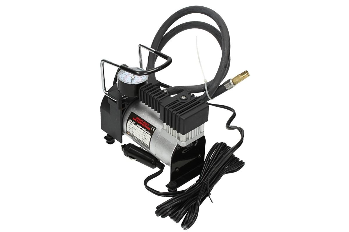 Celokovový kompresor na 12V, je malý a lehce přenosný, přesto podává výkon 35 litrů za minutu. S vestavěným měřákem tlaku, metrovou vzduchovou hadicí a tří metrovým kabelem na 12 V do zdířky autozapalovače se stane nepostradatelným vybavením vaší garáže, nebo nedílnou součástí vašeho vozu. Snadno tak nafouknete nejen pneumatiky, ale i všechny ostatní kola, nebo větší nafukovací bazén a výřivku.