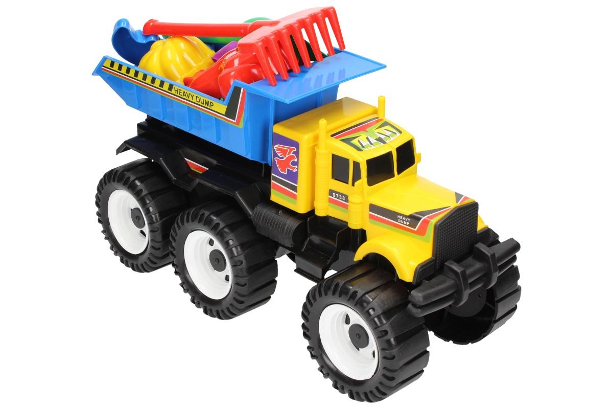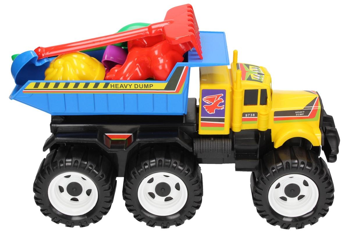 Nákladní auto s bábovkami Heavy Dump je určeno pro děti na písek, má sklápěcí korbu a 3 nápravy.