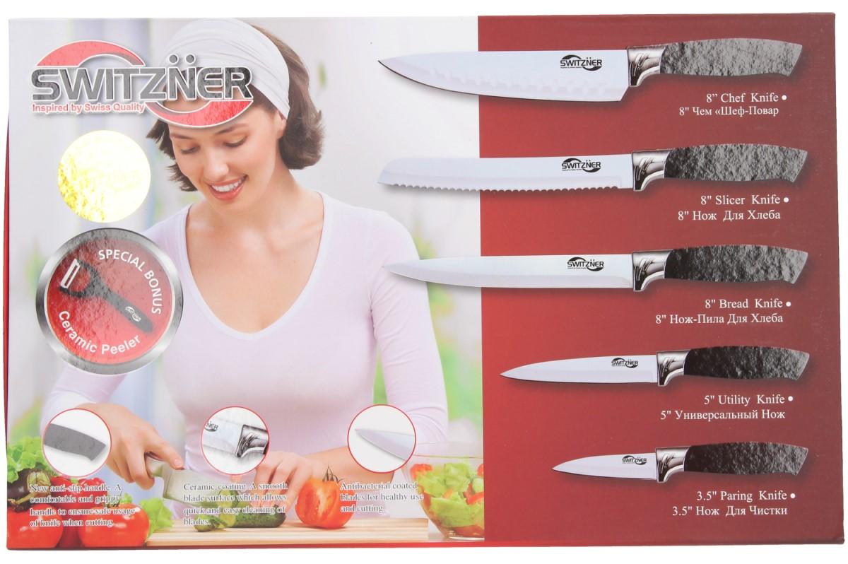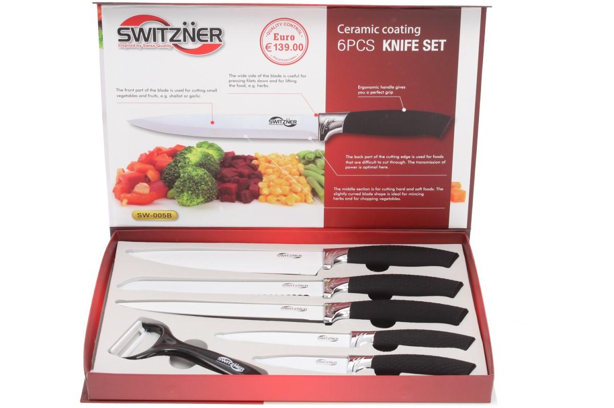 Sada 6ti nožů SWITZNER SW-005W je uložena v krásném dárkovém boxu včetně škrabky na brambory, zeleninu apod., kterou od nás dostanete ZDARMA!
