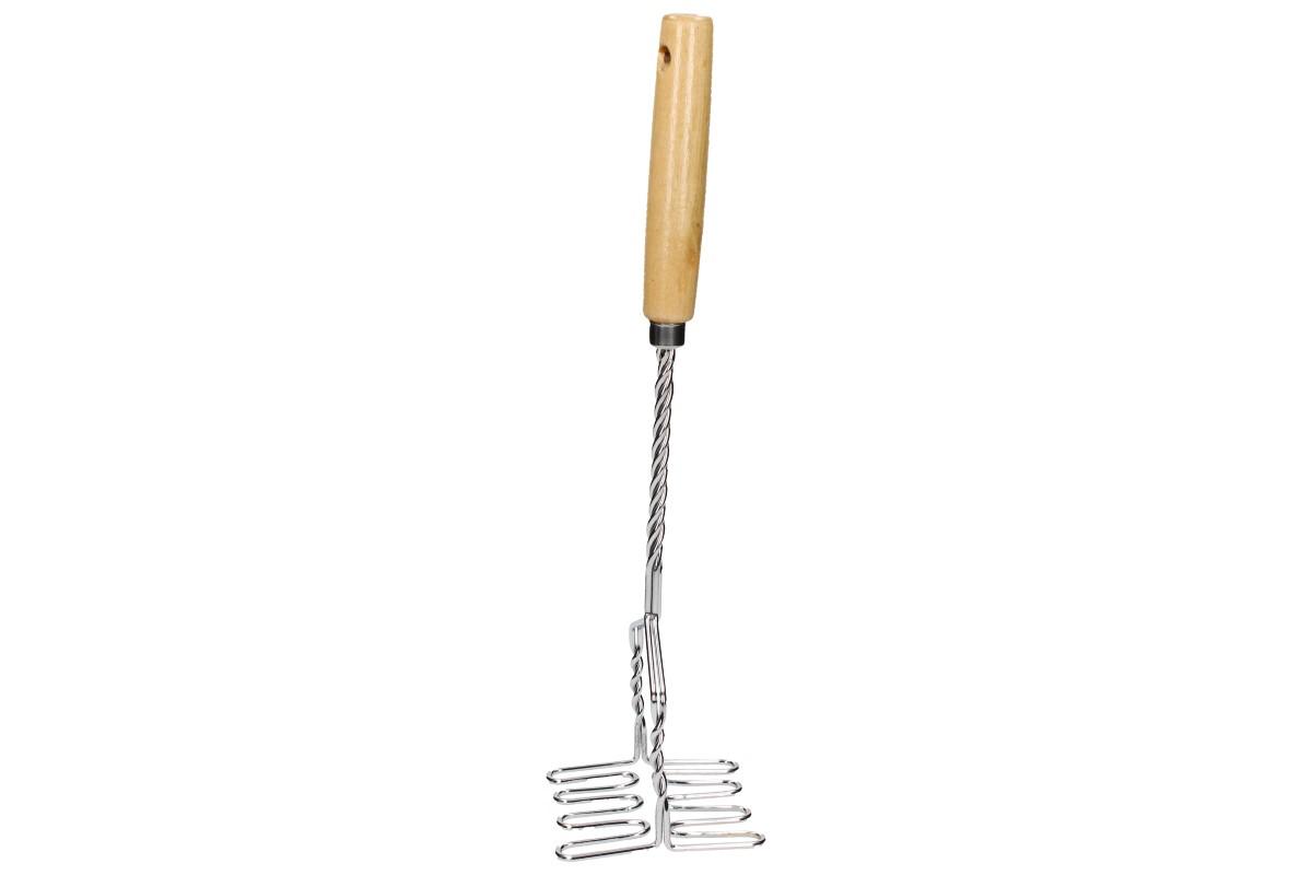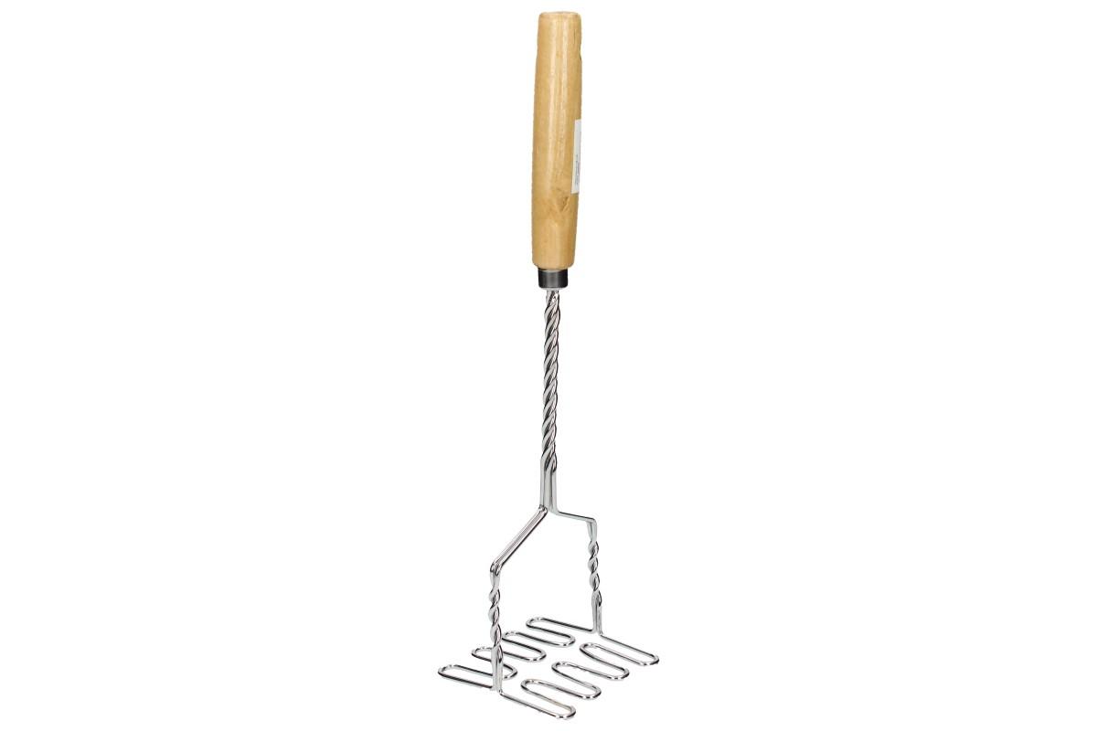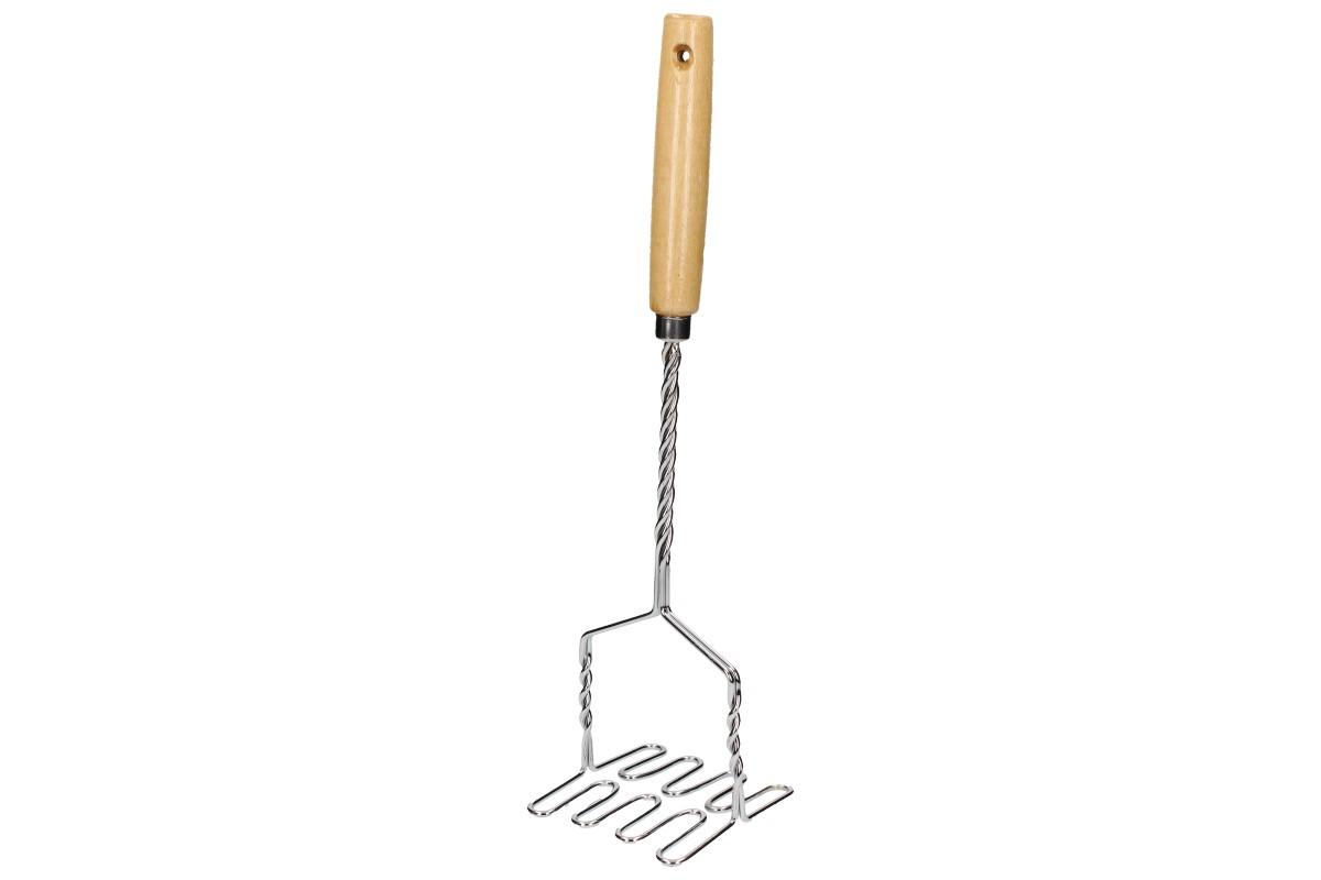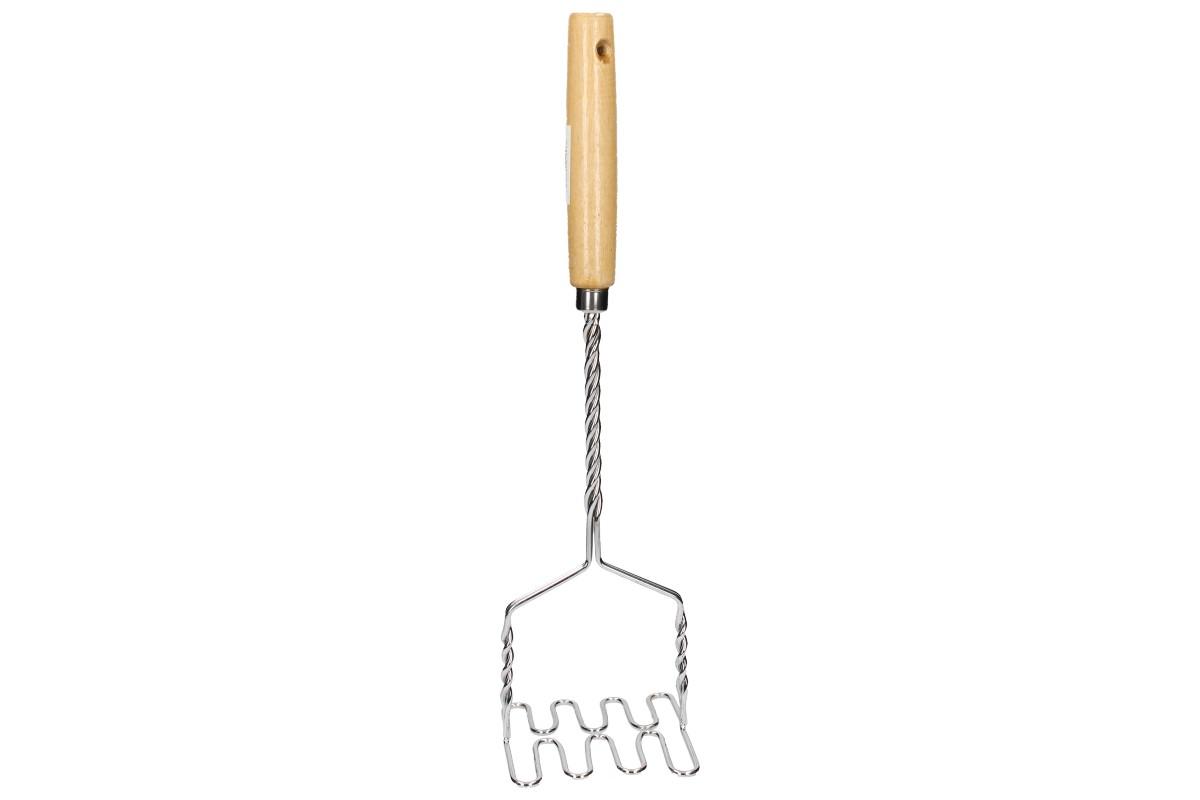 Nerezové šťouchadlo na brambory s očkem na zavěšení, nepostradatelný pomocník při výrobě bramborové kaše, šťouchaných brambor apod., který by neměl chybět v žádné domácnosti.Délka 38 cm.
