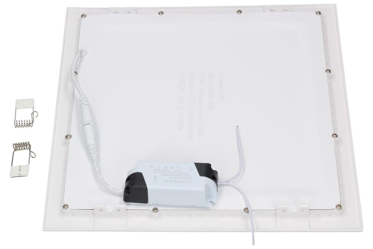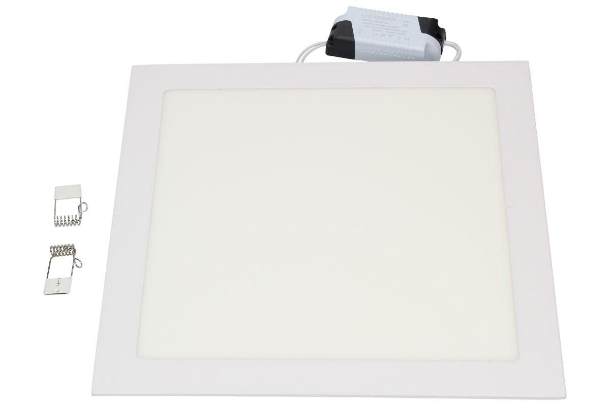 Supertenký, úsporný, vysoce svítivý LED stropní panel 24W hranatý zápustný s bílým rámečkem. Tenká konstrukce svítidla předurčuje snadné použití ve všech možných druzích podhledů počínaje sádrokartonem, konče minerálními podhledy. I přes své malé rozměry dosahuje tělo chladiče velký účinek odvodu tepla z LED diod což se pozitivně projevuje na životnosti svítidla, která přesahuje 50.000 hodin svícení. Jedná se o tzv. "zápustné" svítidlo, které je ve stropu (ideálně sádrokarton) zapuštěné a splývá tak s rovným stropem. Díky rozptylovému difuzoru je světlo do prostoru šířeno pod úhlem 150°. Klasické LED žárovky mívají kolem 130° (dle typu). Proto je dobré zvážit zda u klasických typů svítidel měnit pouze světelný zdroj či se rozhodnout pro kompletní nové svítidlo. Svítidlo je osazené optimálním množstvím vysoce svítivých SMD LED čipů. Srovnáním výkonu s klasickým světelným zdrojem vychází ve prospěch LED technologie. Úspora představuje až 80%. Svítidlo díky použití speciálního difuzoru podává jednolité světlo bez zkreslujících efektů. Náběh do plného výkonu je okamžitý. Nevyzařuje žádné UV záření a teplo, nebliká, nehučí, je úsporné a tím i ekologicky šetrné. Zdroj je součástí balení.