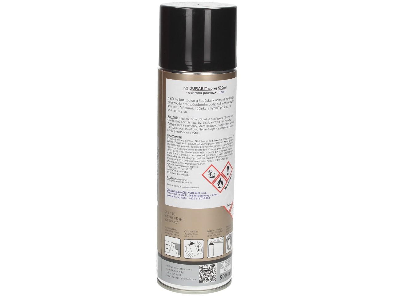 Na Ochranný asfaltový nástřik na podvozek K2 DURABIT 500 ml poskytujeme záruku 24 měsíců.