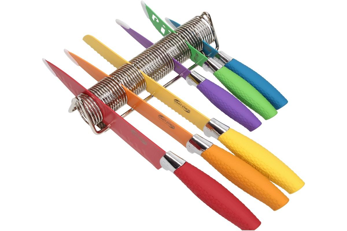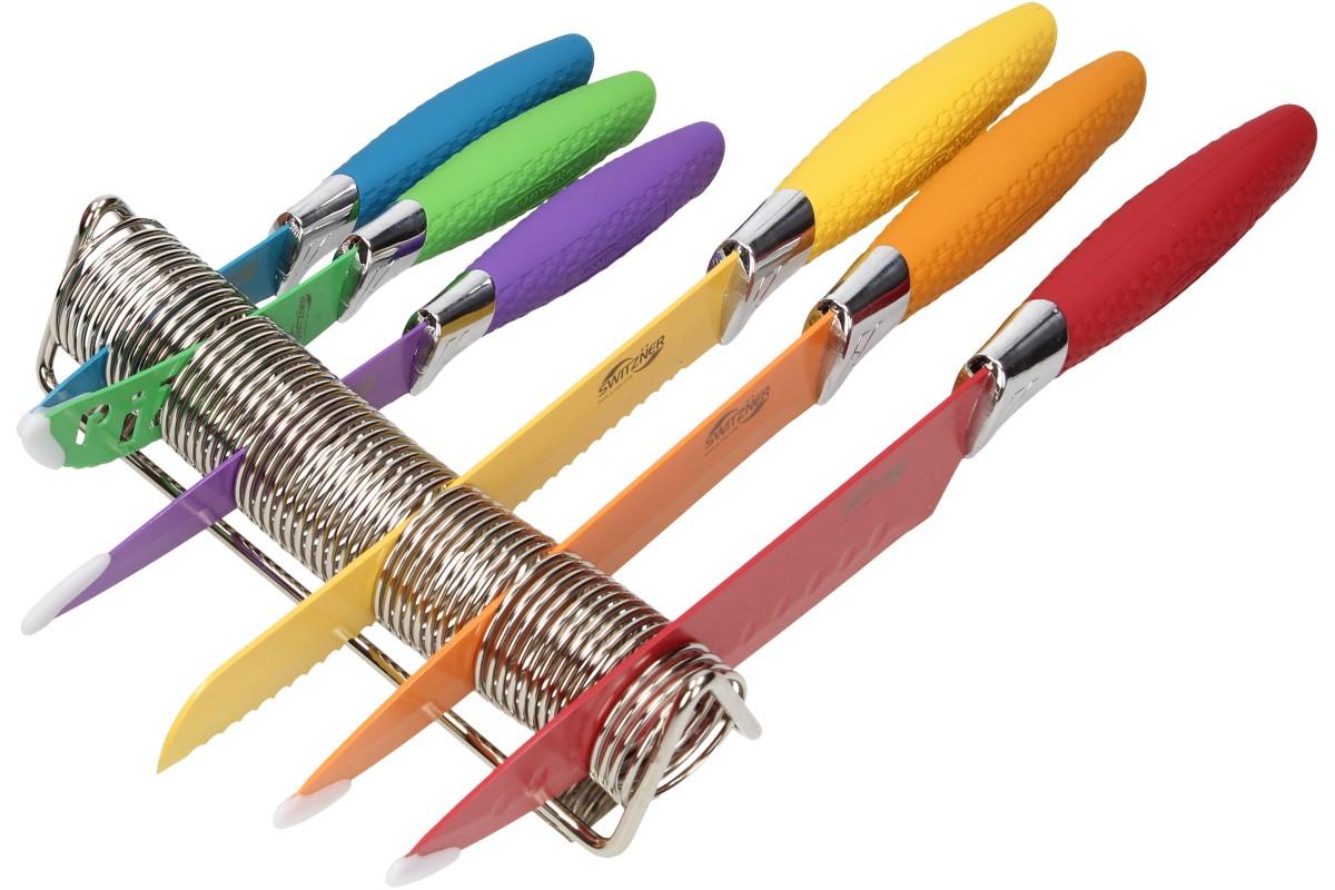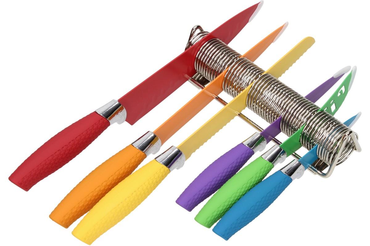 Nůž zasunete čepelí do pružiny,kterou jen postavíte do jakékoli zásuvky.