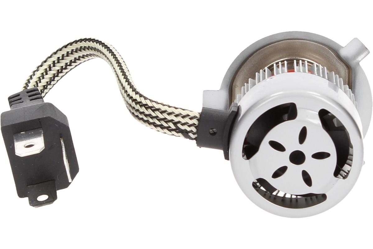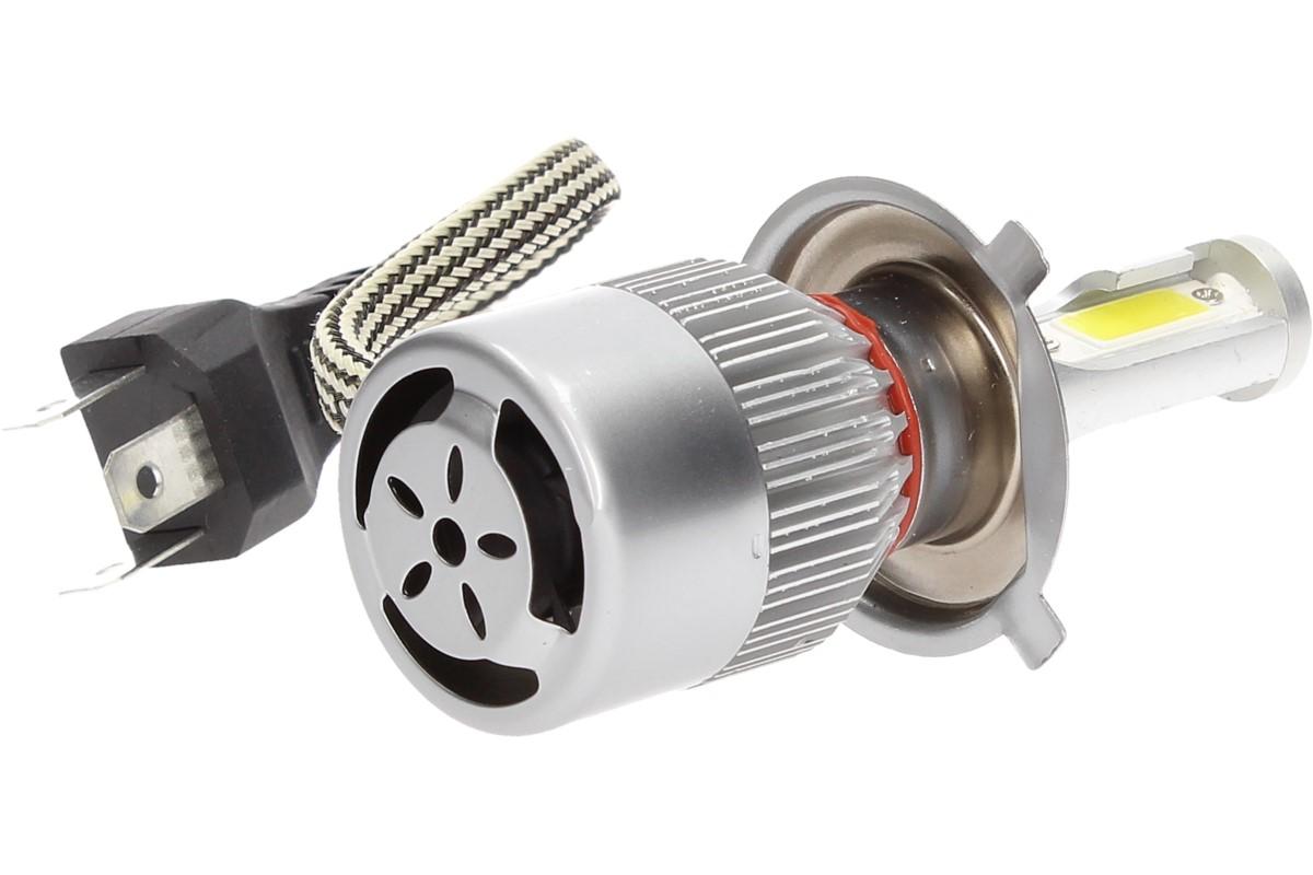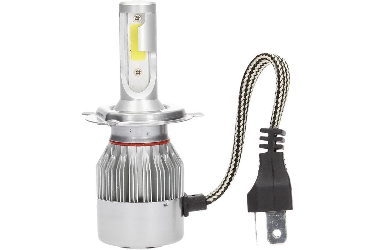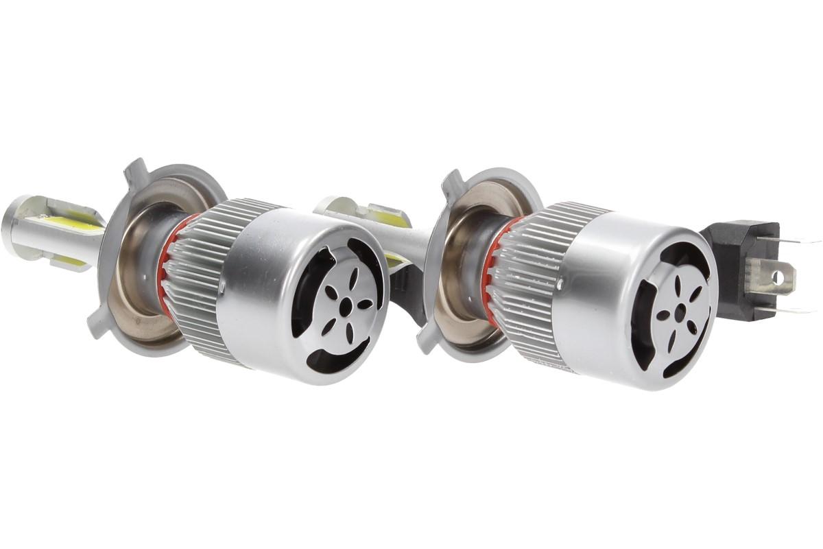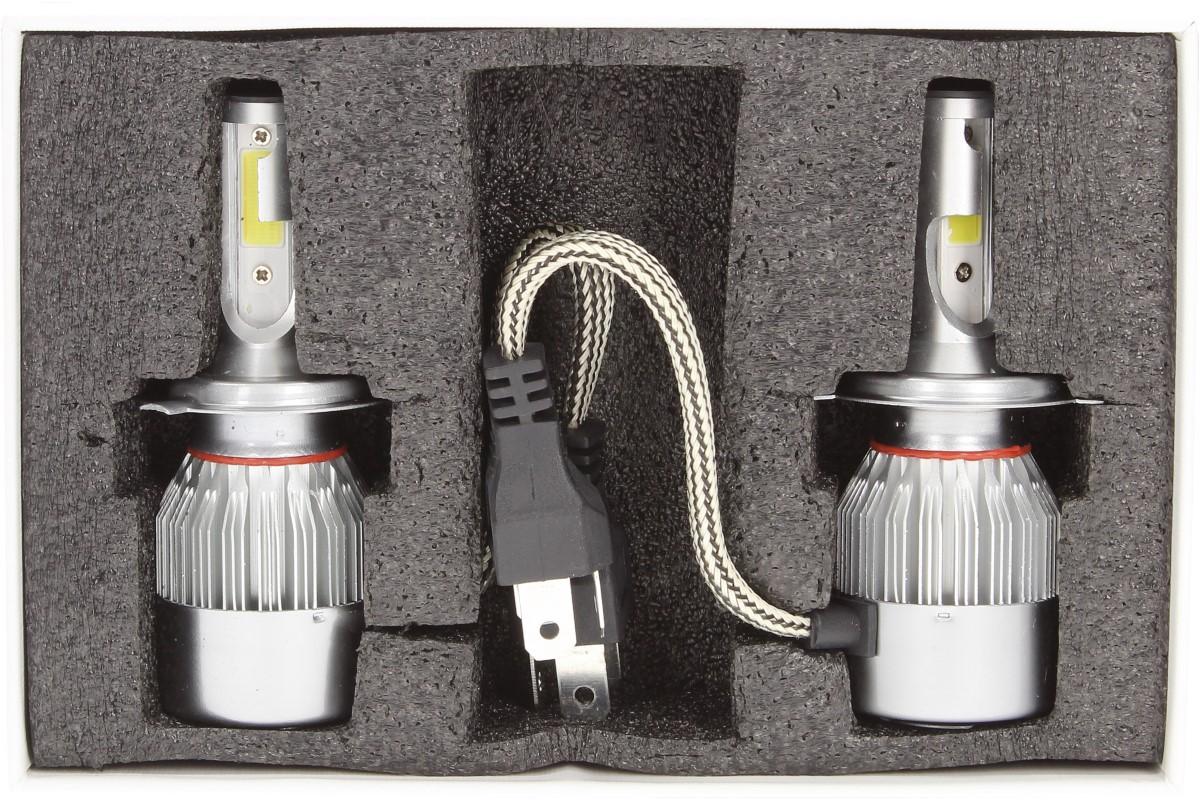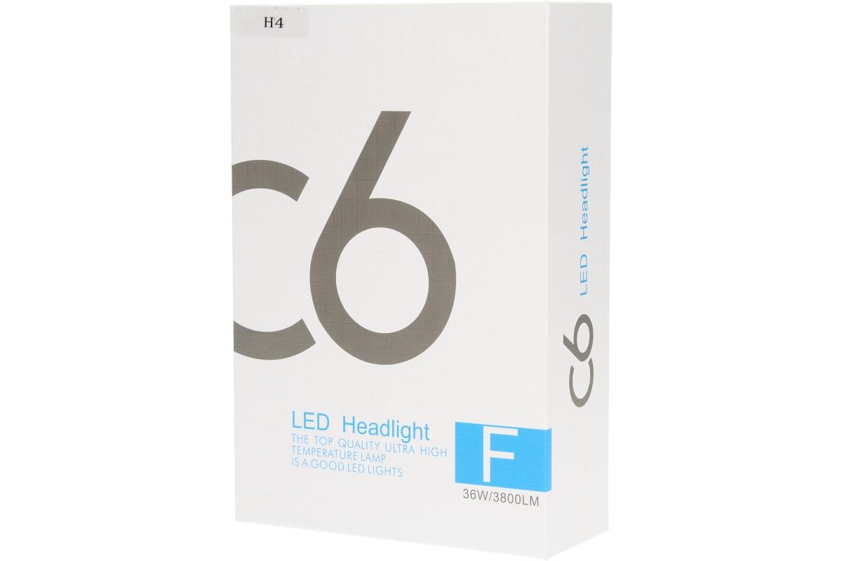 Velice odolná LED H4 C6 žárovka s barvou světla 6000K (studená bílá) do světlometu do auta na 12V, 24V jako náhrada za klasickou nevýkonou žárovku H4.