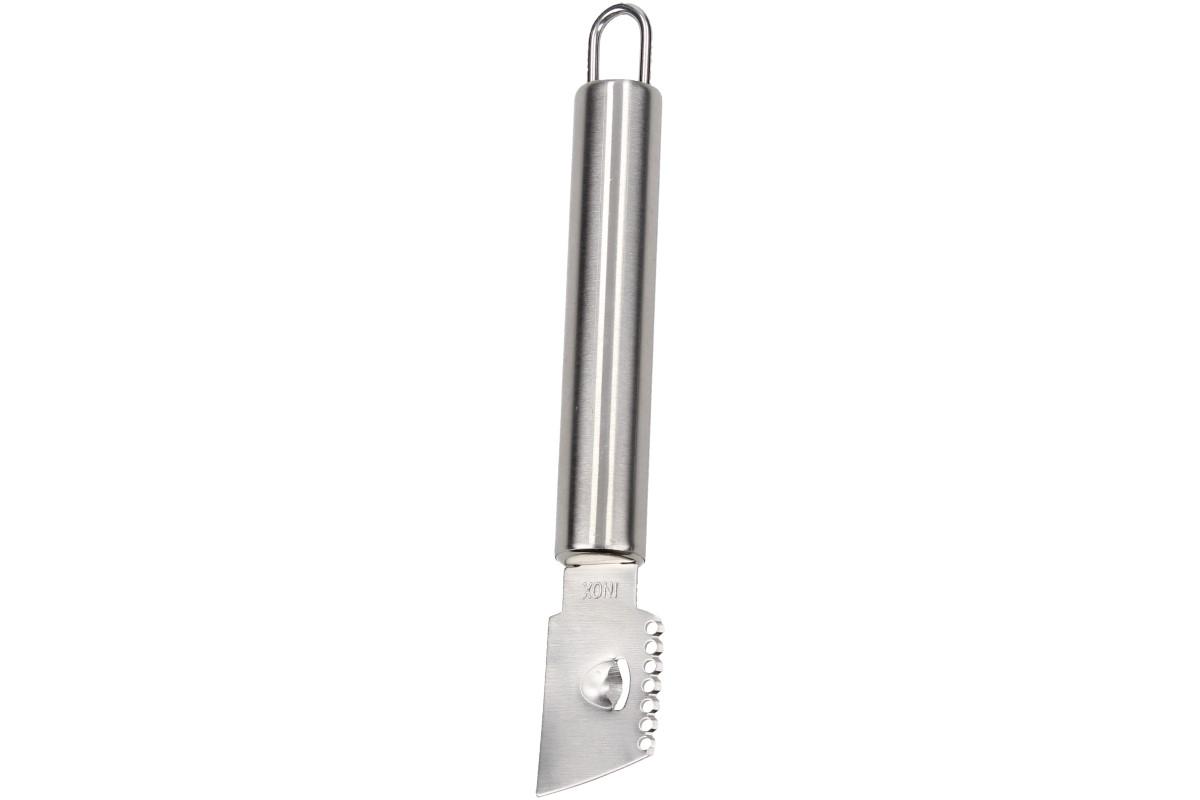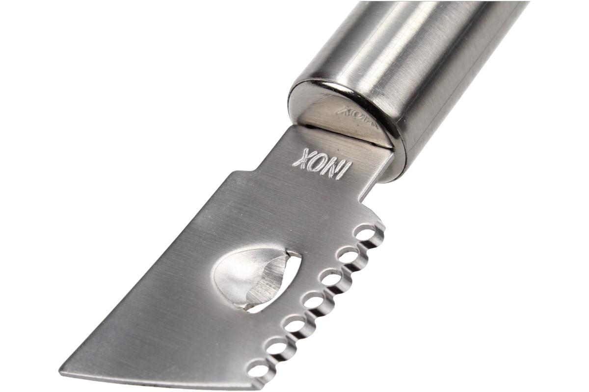 S tímto nerezovým loupačem na citrusovou kůru se snadno stanete umělcem v Carvingu - umělecké vyřezávání ozdob do kůry ovoce či zeleniny. Nerezový loupač krásně naškrábe hoblinky a spirály z citronové kůry pro přípravu moučníků a dezertů. Můžete ho použít i na tvrdý sýr typu Parmezán.