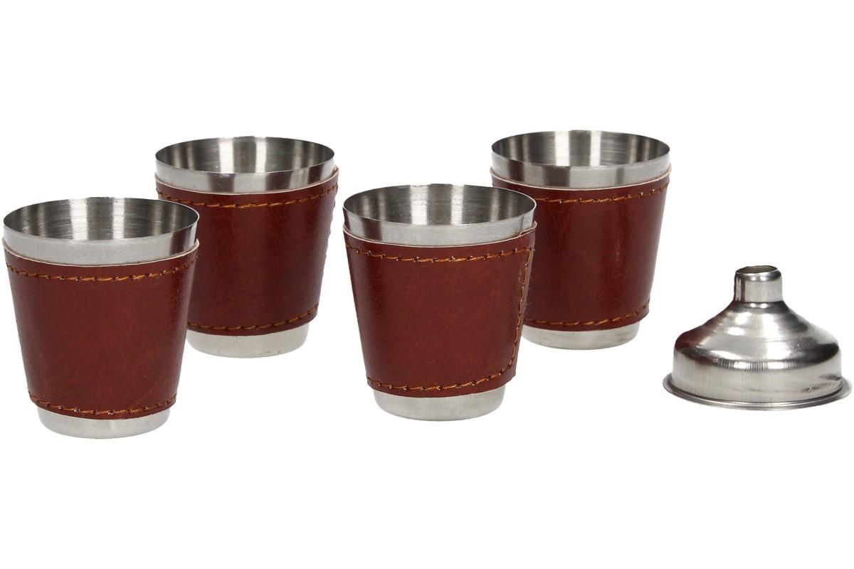 Mini kovové nerez panáky na alkohol 4 x 3,5 cm 4 kusy s pouzdrem jsou díky sklad…