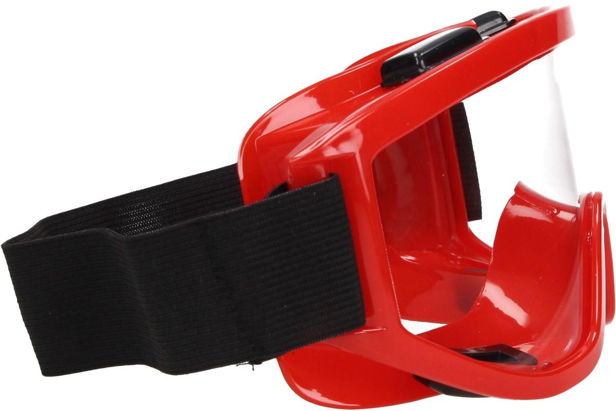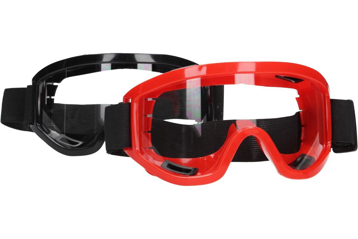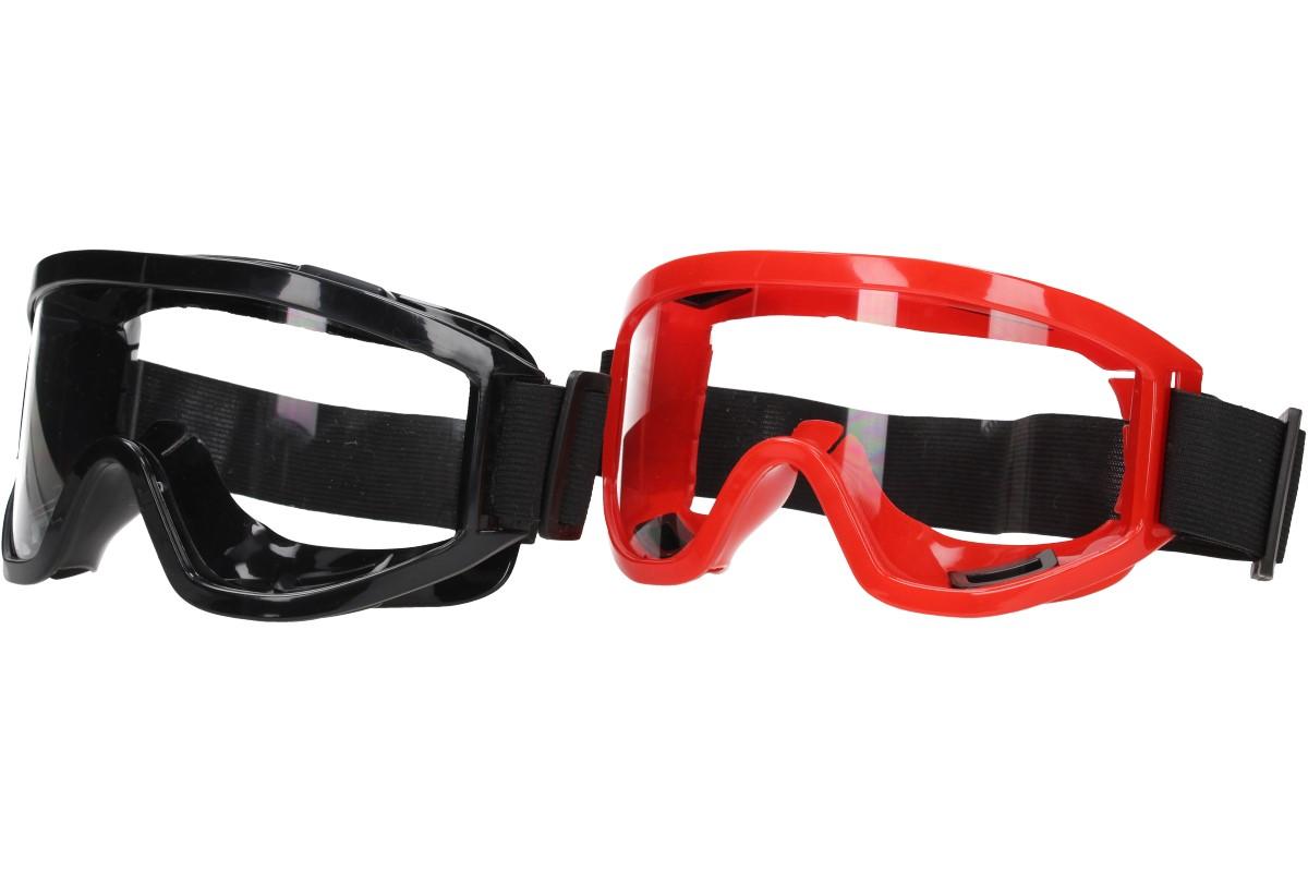 Brýle jsou uzavřené, ale křížově ventilované zdola i z hora, vzduch tedy proudí dovnitř a vlhkost ven, to zaručuje, že se brýle při používání nemlží. Brýle mají délkově nastavitelnou flexibilní gumovou páskou a široké zorné pole. Lisovaná polykarbonátová skla v čiré barvě, o tloušťce 1 mm, zajišťují vysokou odolnost proti nárazu a předurčují tyto brýle pro práci s ručním i elektrickým zařízením. Dodáváme ve dvojím barevném provedení - černé a červené.