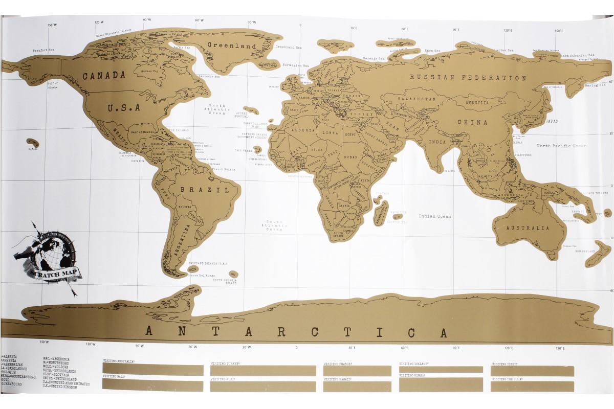 Je velká kvalitní nástěnná mapa světa, kde si můžete vyznačit, kde všude jste byli a které kouty na planetě jste navštívili, nebo by jste navštívit chtěli. Mapa je opatřena zlatou folií, kterou když seškrábnete v místech kde jste byli, objeví se pod ní jasná barva té dané země spolu s geografickými detialy. Výsledkem je unikátní a osobní mapa, kterou si Vy sami takto vytváříte. Ideální dárek pro všechny cestovatele a dobrodruhy, ale i jako učební pomůcka.