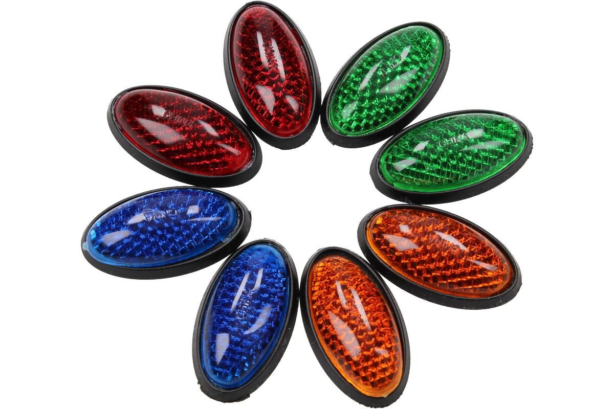 Sada obsahuje osm oválných bezpečnostních odrazek ve čtyřech barvách, modrá, zelená, oranžová a červená. Odrazky jsou v dnešní době naprostou nezbytností pro pohyb na vozovce, nebo v její bezprostřední blízkosti. Krásně, vkusně a decentně ozdobí batohy, školní tašky, kola, koloběžky, motorky i auta, a přitom naprosto spolehlivě odrazí světlo a upozorní na Vás. Odrazky se připevňují pomocí oboustranné lepící podložky, která je součástí balení.