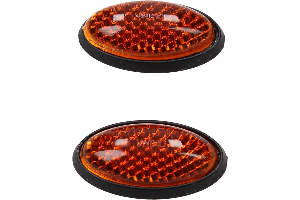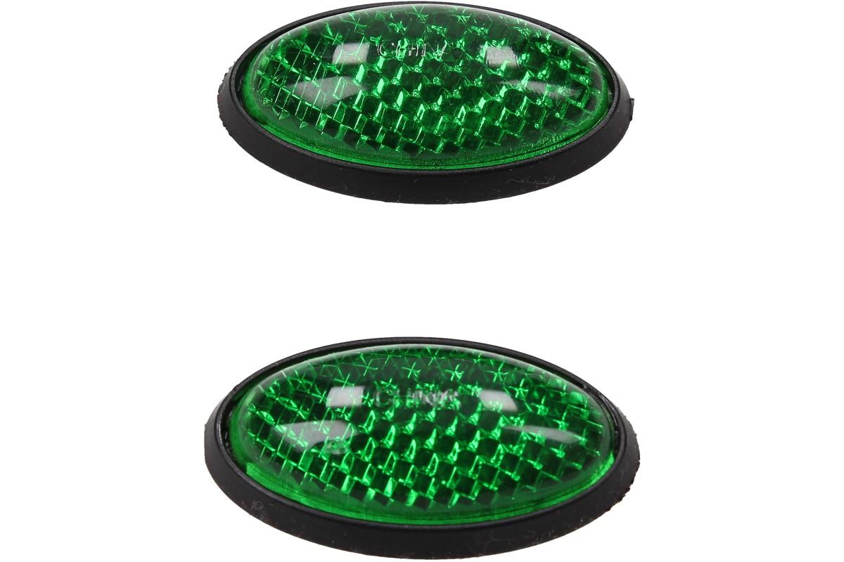 Odrazky bezpečnostní barevné jsou malé reflexní prvky, které se používají k označení nebo označení automobilu nebo jiného vozidla pro lepší viditelnost v noci nebo za špatného světelného osvětlení. Tyto odrazky se skládají z reflexního materiálu, který odráží světlo zpět k řidiči nebo jiným účastníkům silničního provozu, aby bylo vozidlo lépe viditelné.