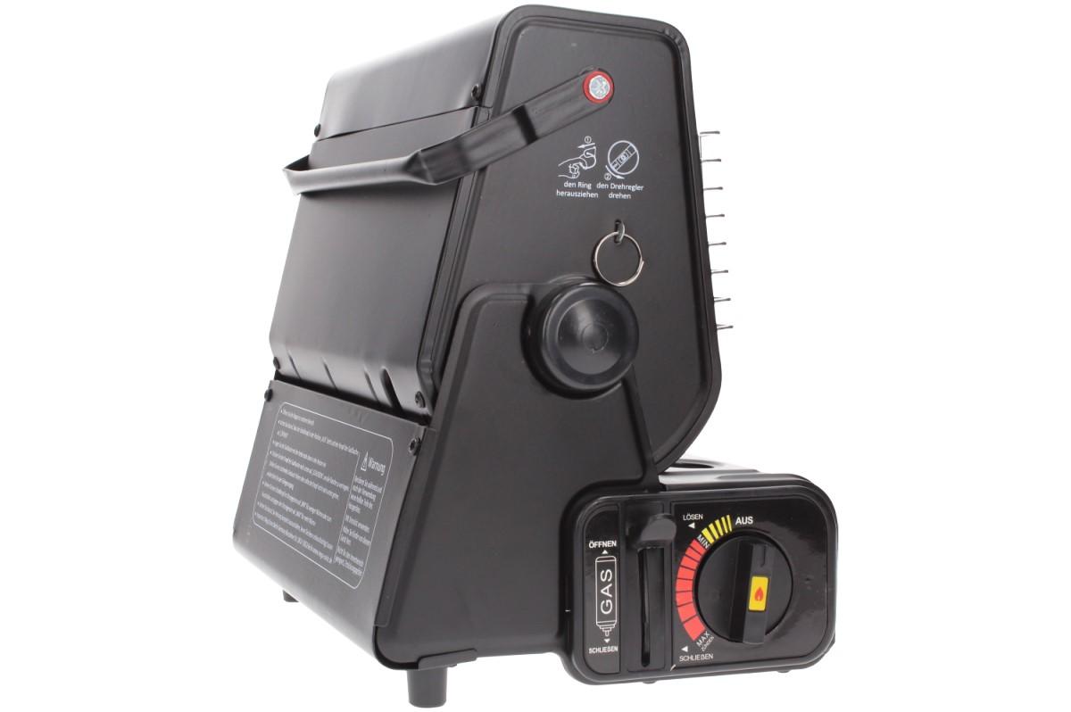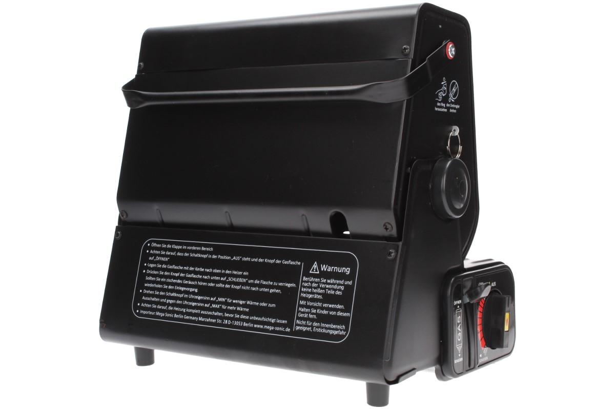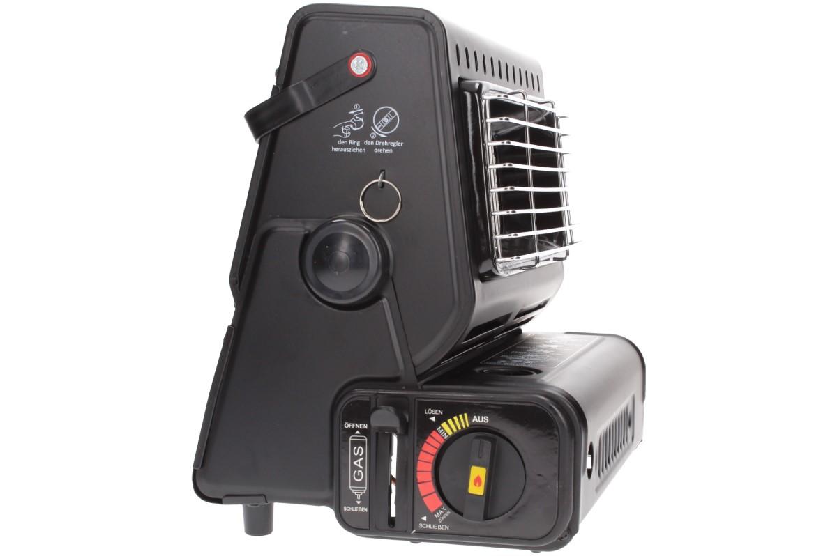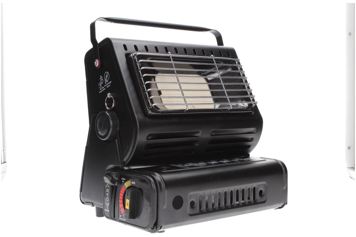 Přístroj má pohyblivé tělo k nasměrování vyhřívání, zapalovací spínač k zažehnutí, klip v místech připojení plynové kartuše, otočné kolečko pro nastavitelnost intenzity tepla a keramický hořák s výkonem 1,3kW, krytý bezpečnostní mřížkou.