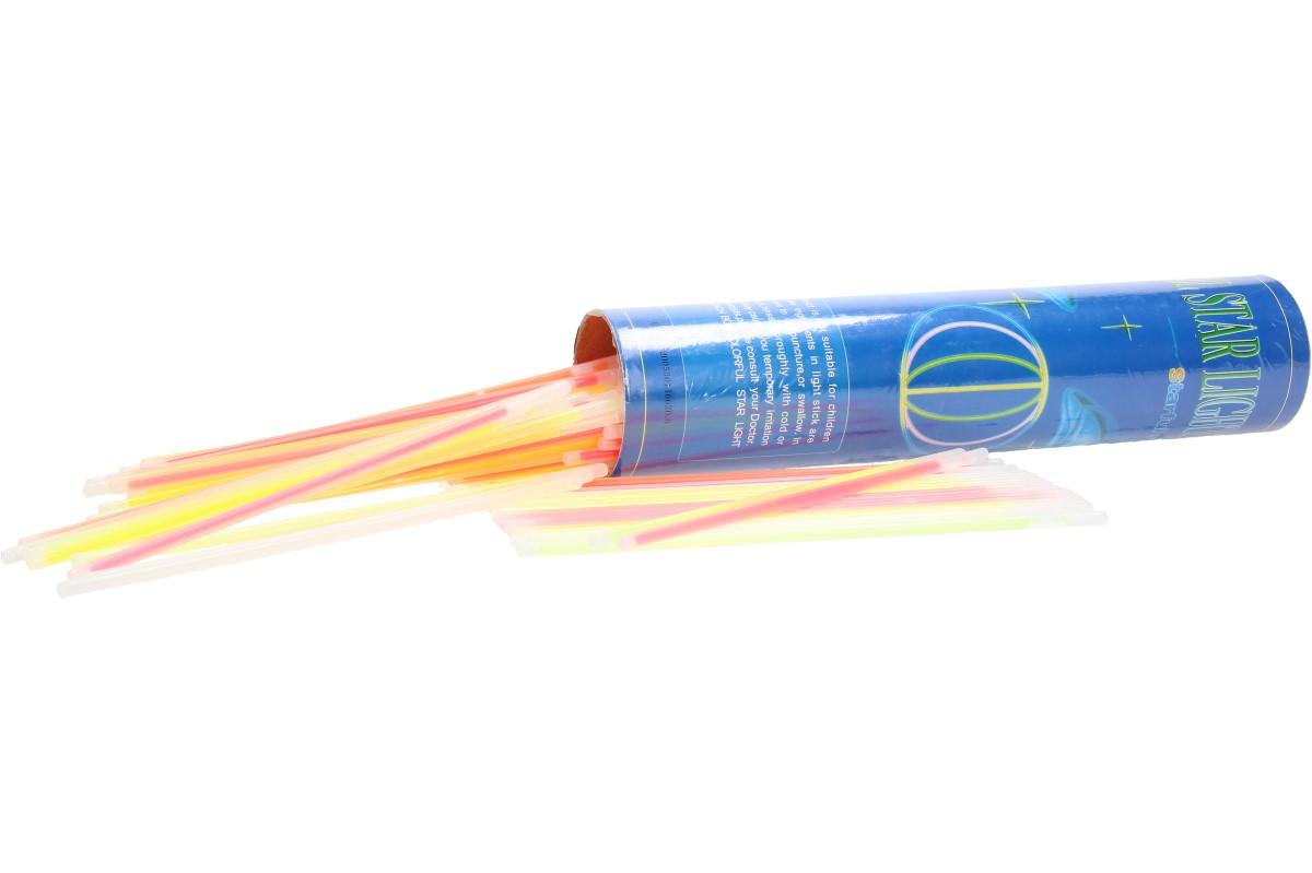 Svítící tyčinky obsahují fluorescenční látky, které ve tmě nádherně svítí. Tyčinku a její světlo aktivujete zlomením, které smíchá látky uvnitř tyčinky. Pak bude tyčinka velmi intenzivně svítit 7 hodin a dalších 20 hodin bude dále svítit slabě.