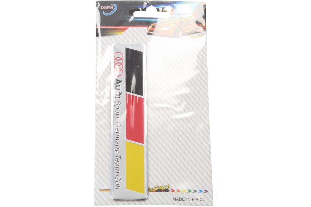 Kvalitní kovovou samolepku s nápisem Audi Motorsport Germany Team Goh a třemi barevnými pruhy, můžete nalepit nejen na auto, kterému tím dodáte elegantní vzhled, ale třeba i na skříňku, notebook, nebo na sešit. Kvalitní barevná nálepka na aluminiovém plátu s ilustrací a nápisem je opatřena oboustranou lepicí páskou. Předností této nálepky je fakt, že vydrží podstatně delší dobu než nálepka klasická.