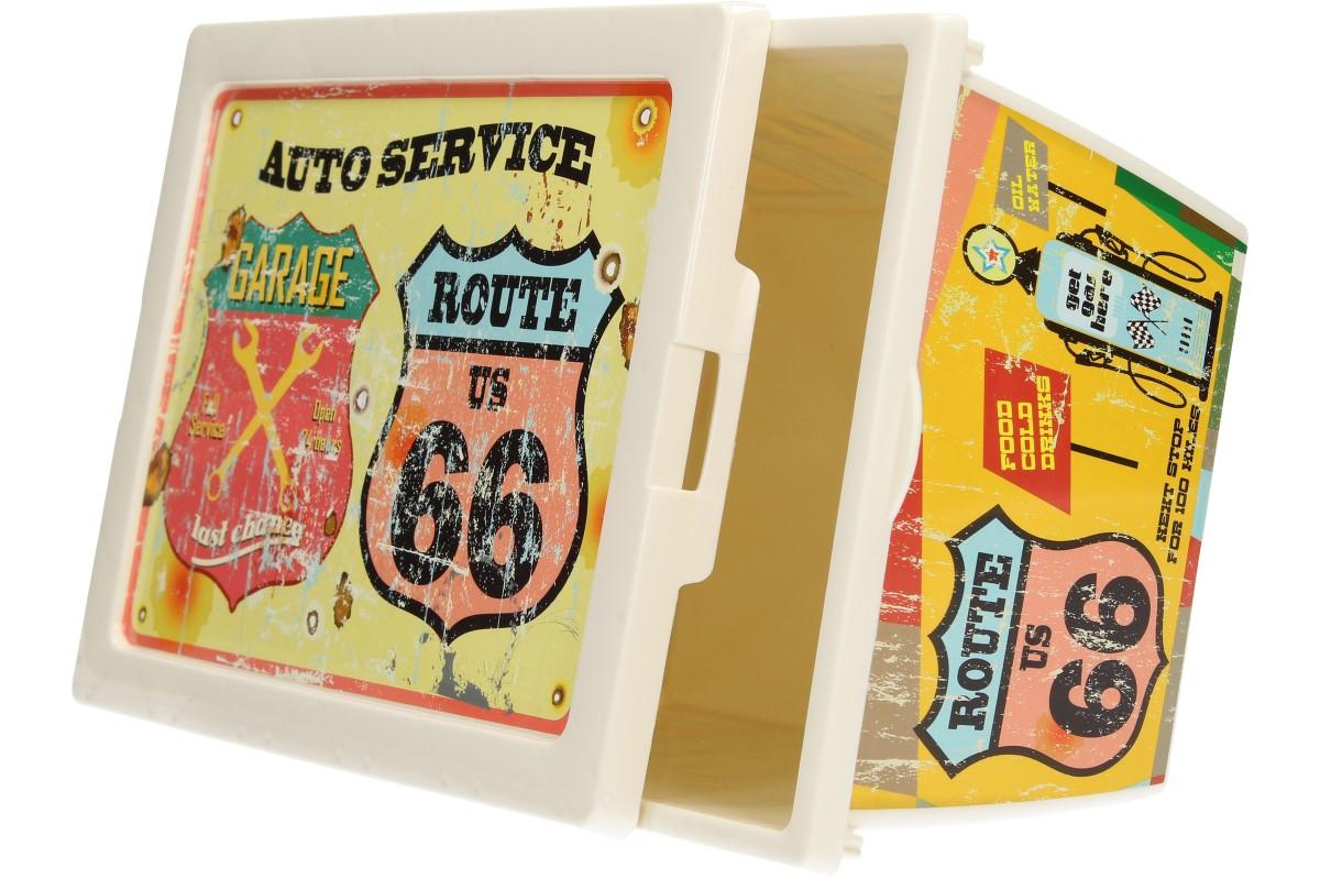 Praktický plastový box dodáváme ve třech různých velikostech se 3 různými potisky v retro vintage motivu. Potisk je ze všech stran, box se snadno udržuje hygienicky čistý.