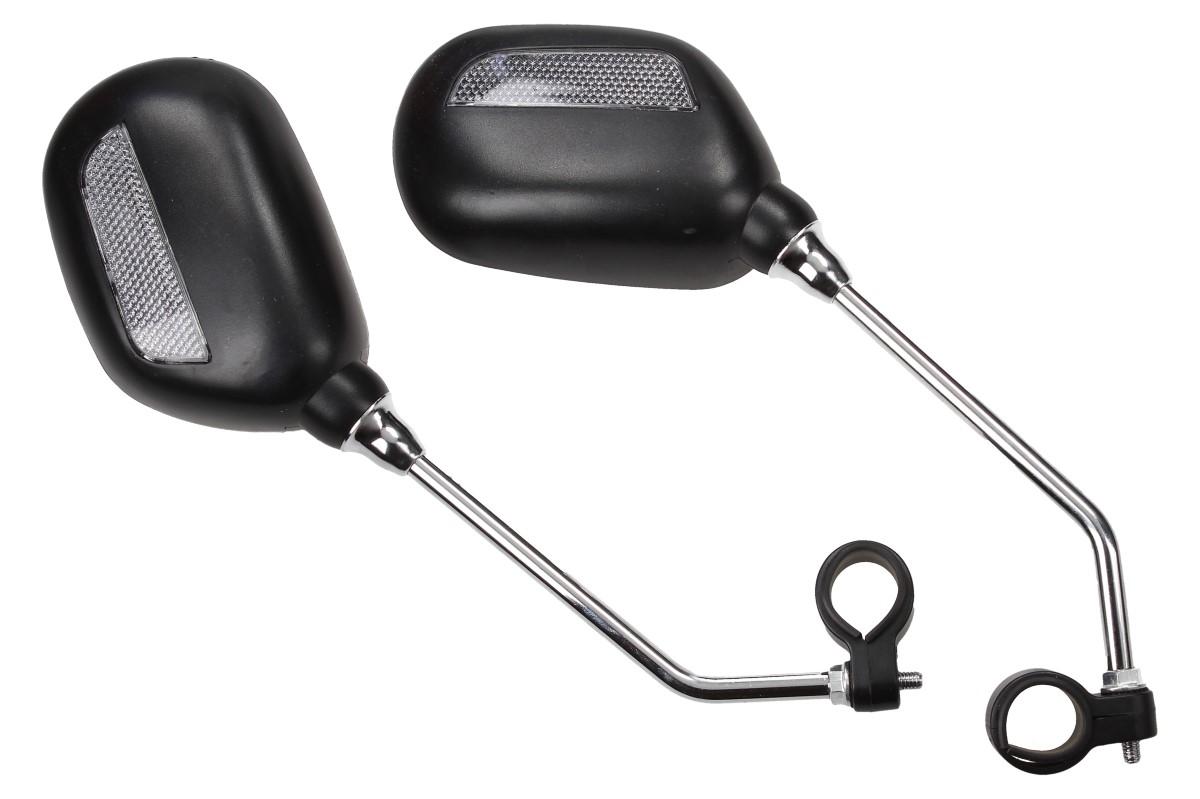 Zrcátka jsou vyrobeny z kvalitního materiálu a mají robustní konstrukci, což znamená, že jsou odolná proti nárazům a dlouhodobému používání. Zrcátka mají odrazku, což zvyšuje vaši viditelnost v podmínkách špatné viditelnosti a zlepšuje vaši bezpečnost na silnici.