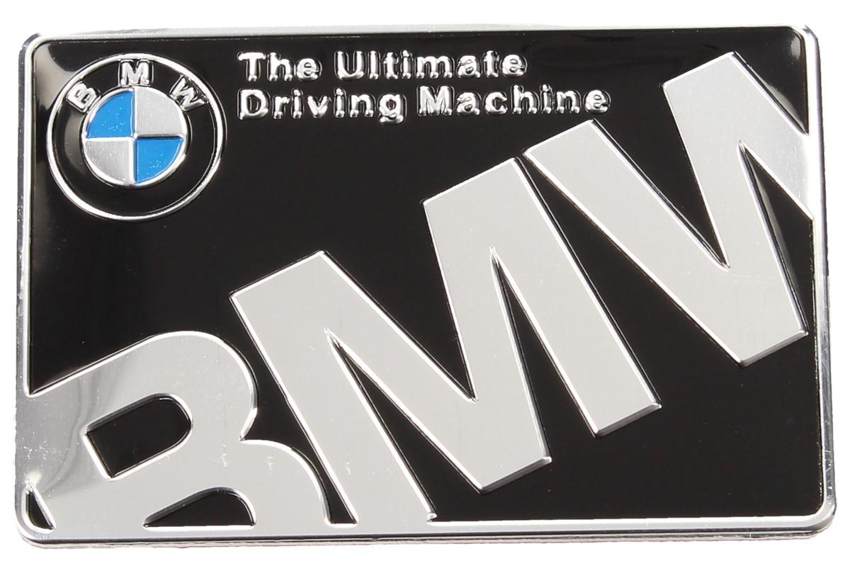 Kovová samolepka BMW The Ultimate Driving Machine 6x4 cm. Kovovou samolepku zaručeně ocení majitelé vozů BMW. Kvalitní aluminiová nálepka o rozměrech 6x4 je opatřena oboustranou lepící páskou a neničí povrch laku na autě. Samolepka je opatřena vrchní průhlednou ochrannou folií, po nalepení samolepky na předmět, tuto ochranou folii strhněte. Krásná samolepka BMW je určitě vhodná i jako dáreček pro vaše partnery i kamarády.