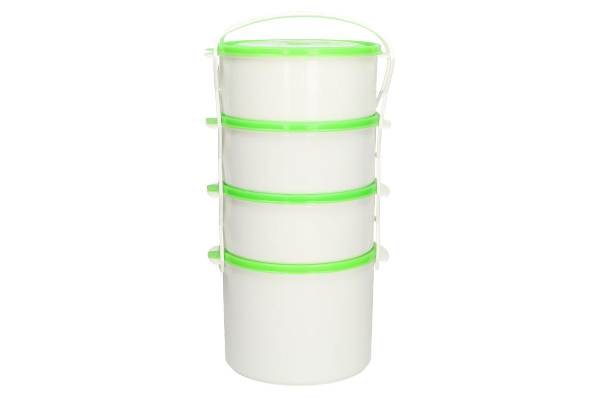 Jídlonosič klasik čtyřpatrový. Je velice praktická přenosná sada např. do práce, do školy, na služební cesty, na výlety, na piknik nebo i jako pro skladování různé sušené zeleniny a ovoce. Dózy obsahují víka a také spojovací poutko pro pohodlnější přenesení.