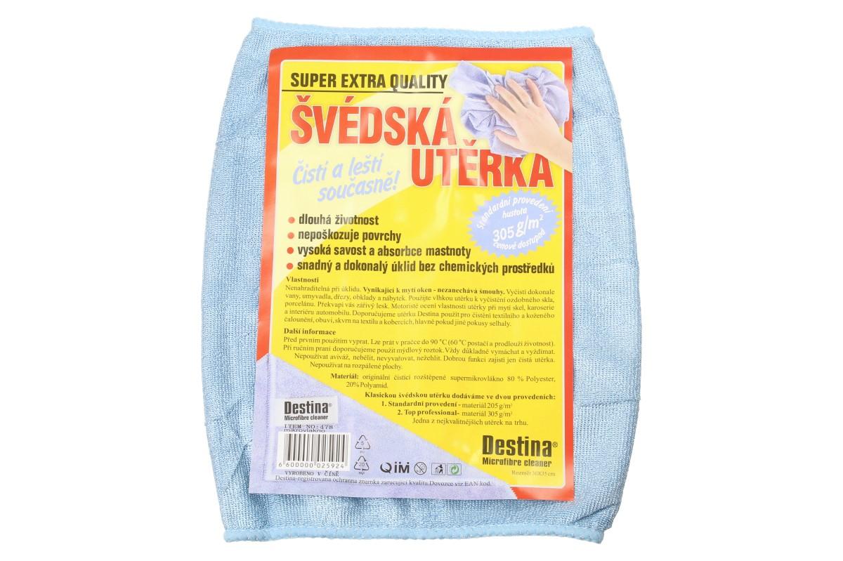 Švédská utěrka 28x28 cm modrá je nenahraditelnou utěrkou při každodenním úklidu. Je vynikající na mytí oken - nezanechává šmouhy. Vyčistí dokonale vanu, umyvadlo, dřez, obklady a nábytek. Motoristé ocení vlastnosti utěrky při leštění karoserie, skla a porcelánu. Utěrka má dlouhou životnost, dá se opakovaně prát i do 90°C. Utěrka nepoškozuje povrchy, je šetrná a vysoce saje.