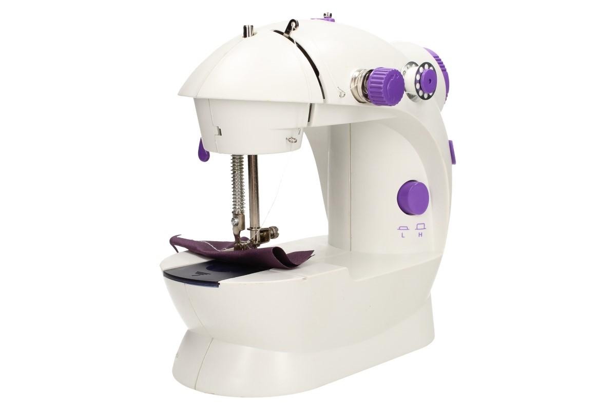 Mini elektrický šicí stroj o velikosti 18 x 19 x 9 cm je velmi praktický pro rychlé a jednoduché šití. Ideálně se hodí do každé běžné domácnosti, pro začátečníky i pokročilé. Malý, moderní šicí stroj je dodáván v bílo fialové barvě. Šicí stroj obsahuje: tlačítko on/off, rychlostní tlačítko, pedál, AC/DC adaptér, 5x cívku na nit, 2x jehlu, 1x pomucku na navlékání jehly. Šicí stroj můžete používat přes adaptér a nebo pres 4 x baterie AA.