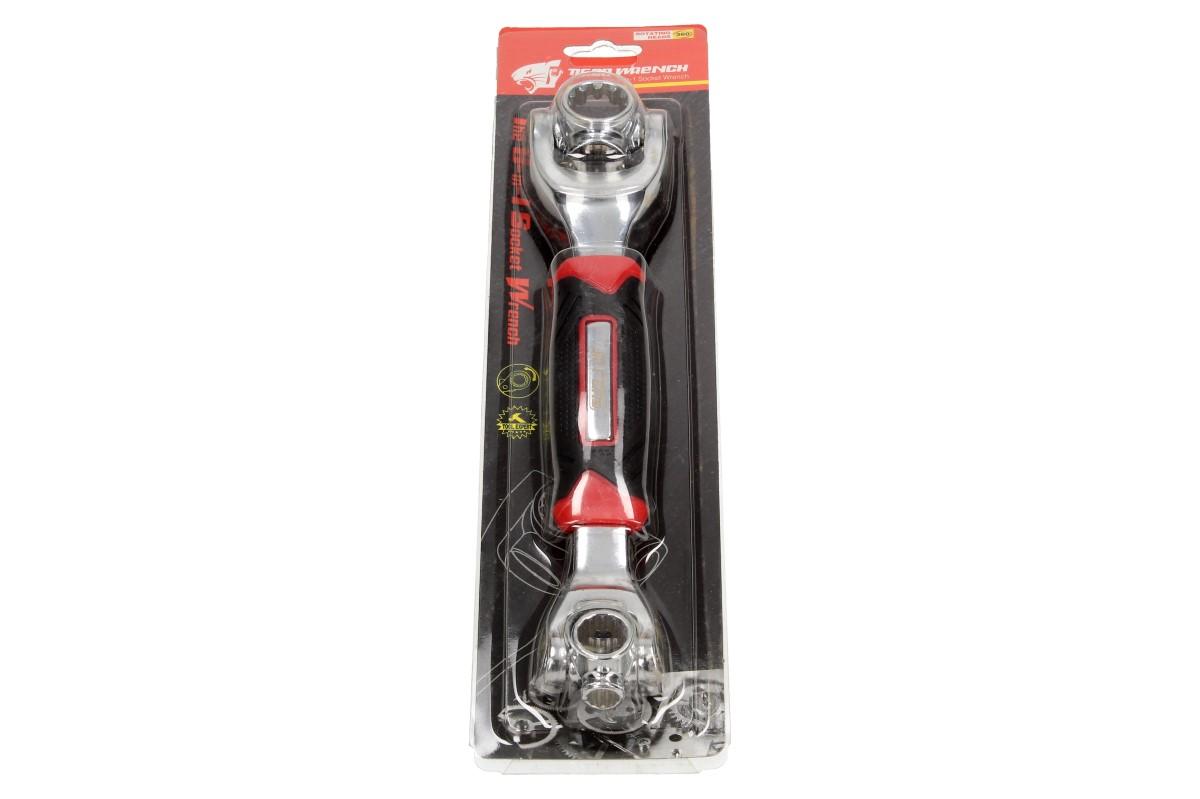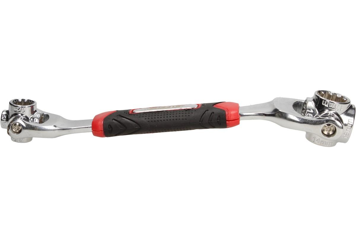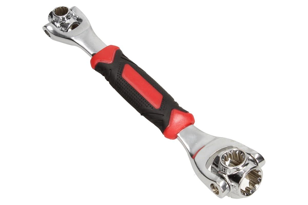 Tiger univerzální klíč 8 v 1 vám usnadní, urychlí práci a hlavně ušetří spoustu potřebného místa v šuplíku. Tento profesionální nástroj je navržen s 360 ° otočnými hlavami, které se rychle mění na požadovanou velikost, takže máte vždy správný klíč po ruce. Z každé strany má klíč otočnou hlavici. Každá hlavice má 4 otvory a 1 otvor sedí na více velikostí matic. Oboustranný kvalitní klíč má pogumovanou rukojeť pro pohodlnější a bezpečnější držení.