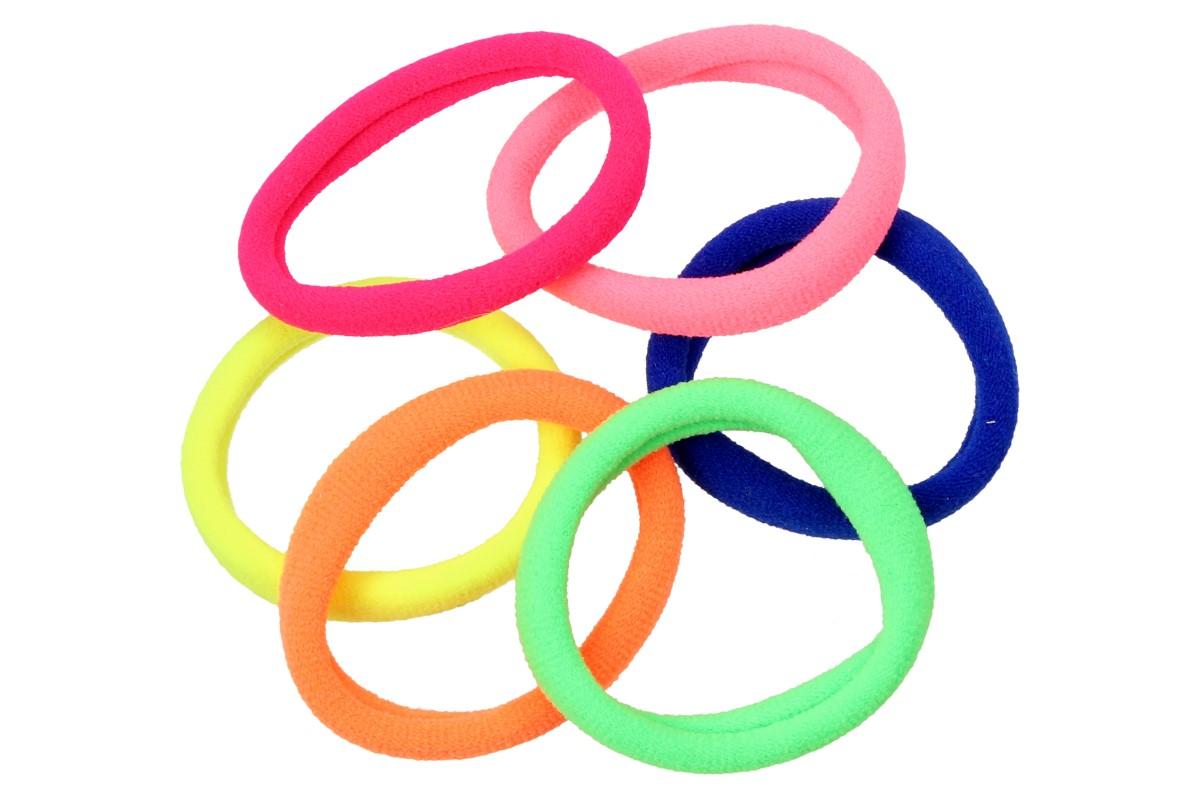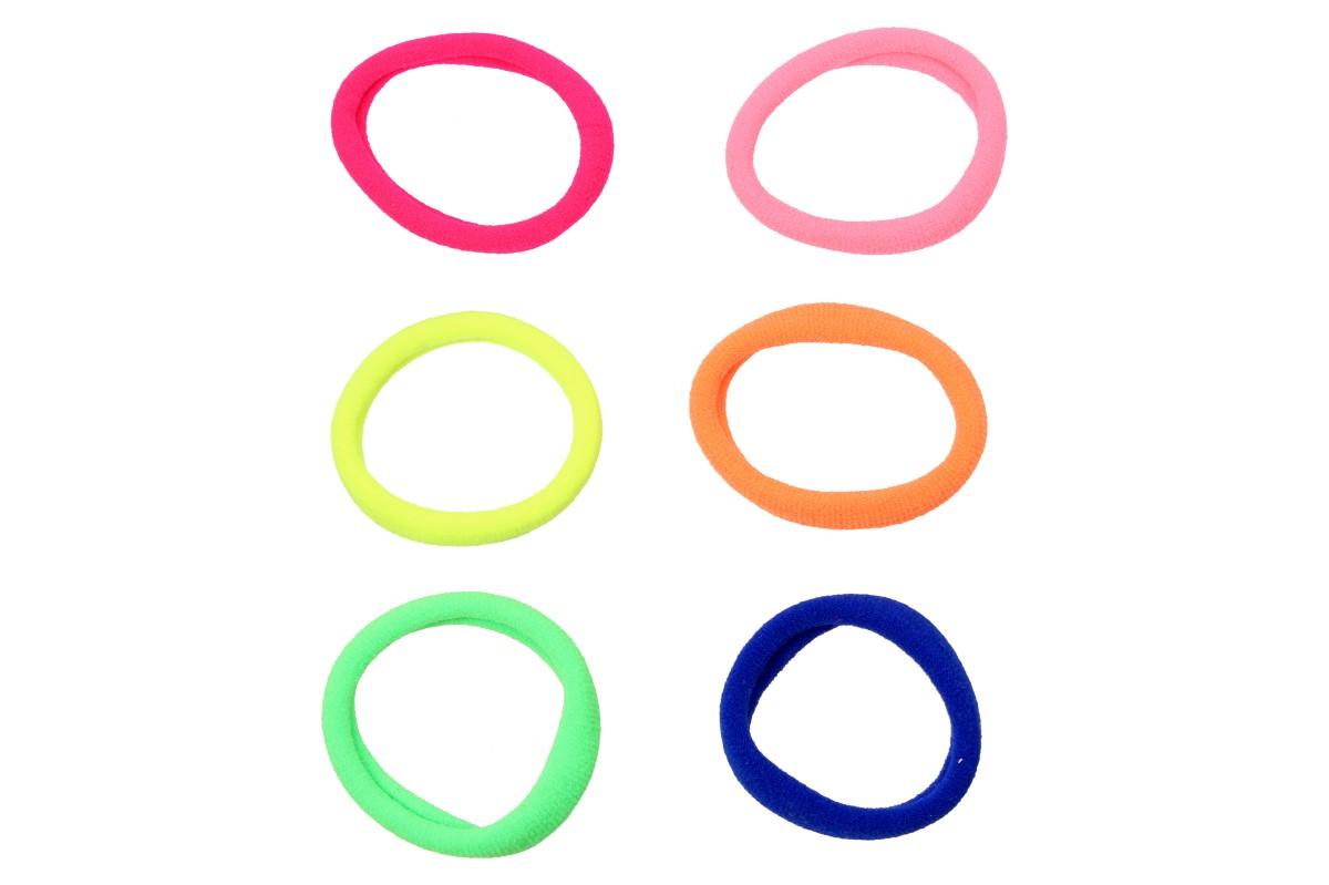 Pevné barevné gumičky do vlasů Sada 6 kusů jsou vyrobeny z jemného materiálu, který netahá a nepoškozuje vlasy. Ideální využití gumiček je pro jakýkoliv účesy i typy vlasů, takže pohodlně vytvoříte pevný účes, který se jentak nerozpadne. Gumička o průměru 4 cm je velice pružná a přizpůsobivá. V balení je 6 druhů barev: tmavě růžová, světle růžová, zelená, modrá, žlutá a oranžová.