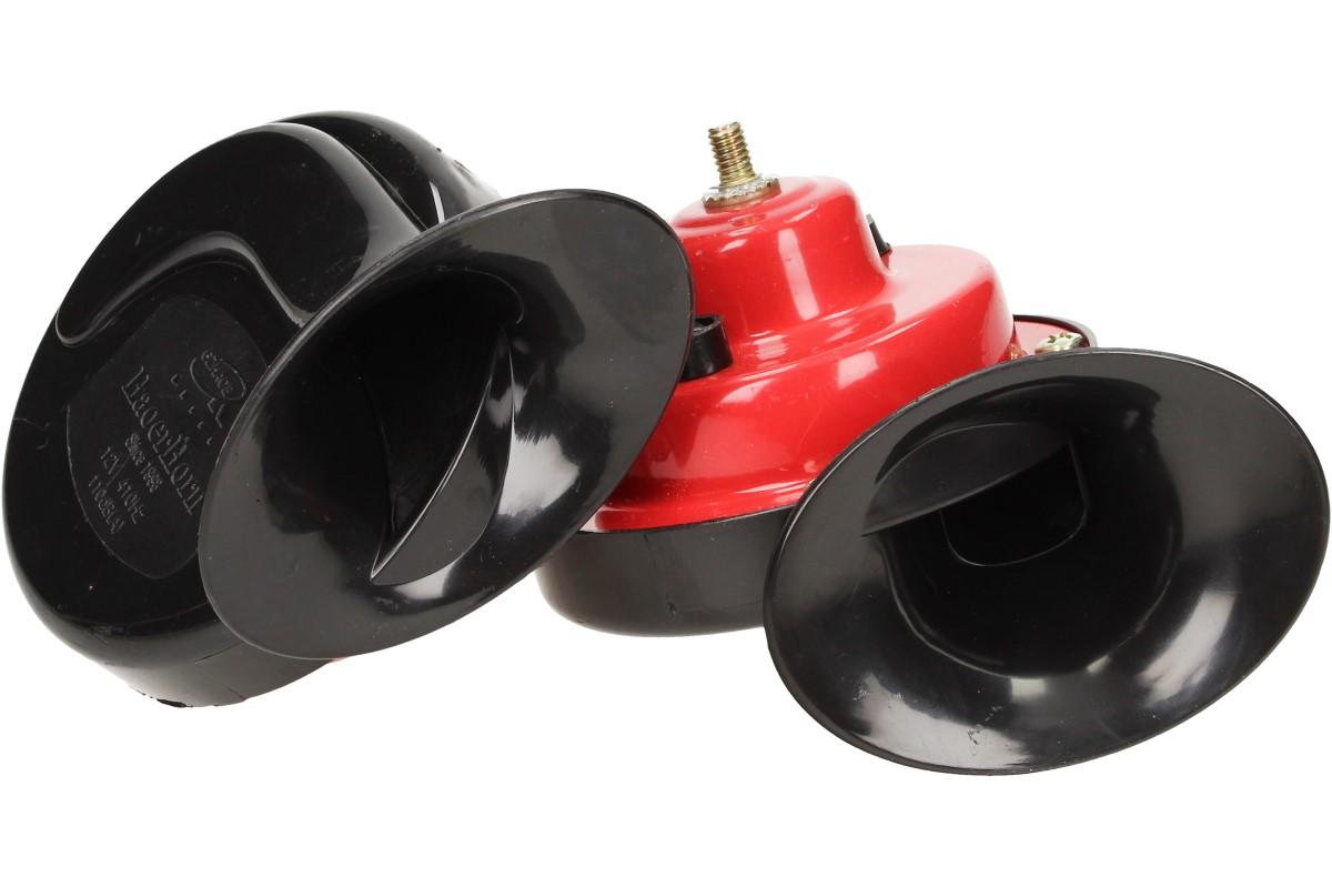 Šnekové klaksony HR-3010 12 V je dvojice výkonných turbínových klaksonů se šnekovým zvukovodem. Souzvuk obou klaksonů je s různými tóny - vysoký 510 Hz a nízký 410 Hz tón. Souzvuk se vyznačuje velice ostrým a výrazným projevem. Plast šnekového klaksonu je proveden v čistě černé barvě. Automobilové (imobilizační) relátko 12V/30A není součástí balení.