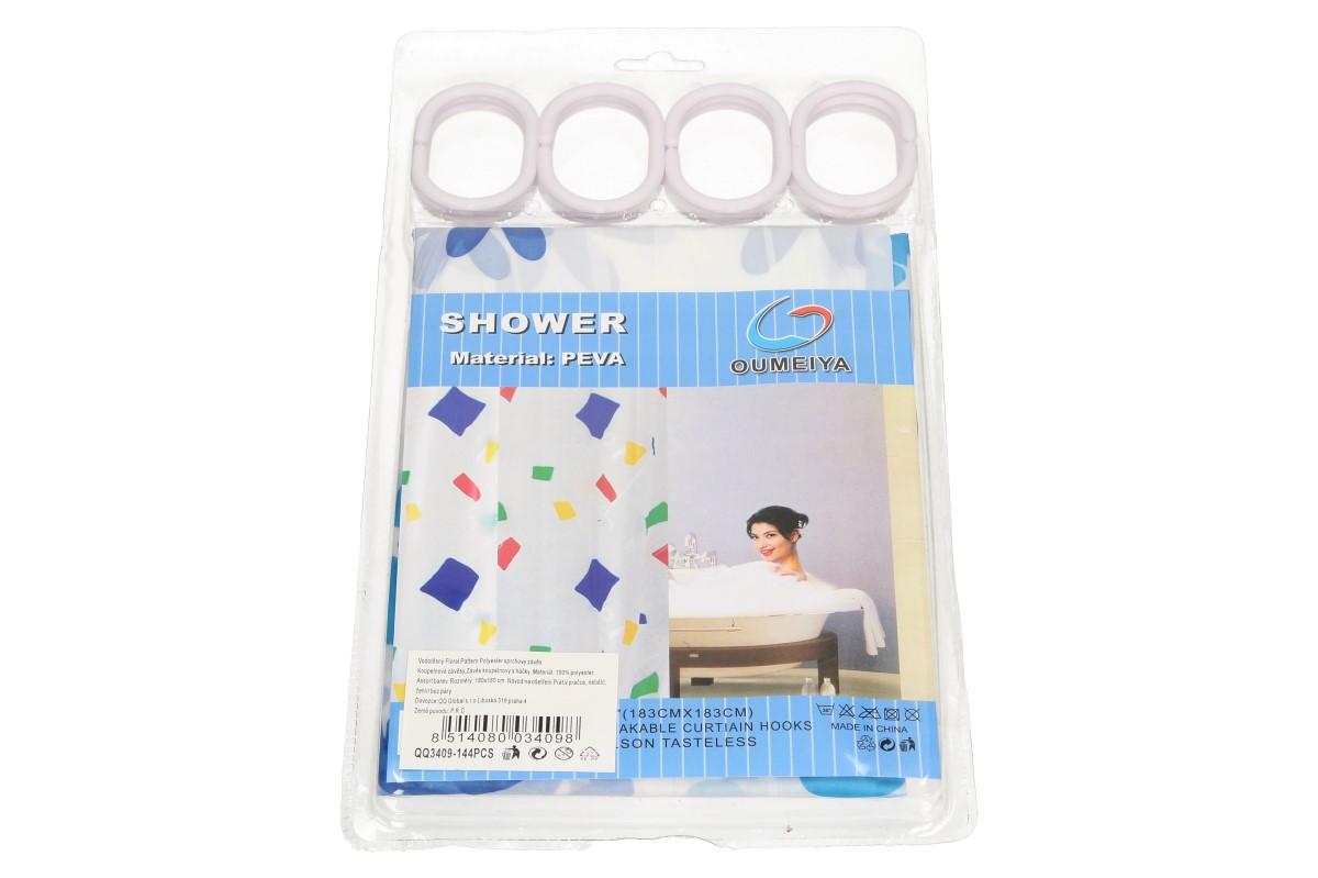 Vodotěsný závěs do koupelny 180 x 180 cm je účinná zábrana, jak omezit zbytečného přístupu vody okolo vany nebo sprchového koutu. Na výběr máme ze tří druhů motivů: design delfínů, modro-zelených kruhů nebo modrých kytiček. Závěs o rozměrech 180 x 180 cm je dodáván s kroužky na uchycení (12 kusů kroužků).