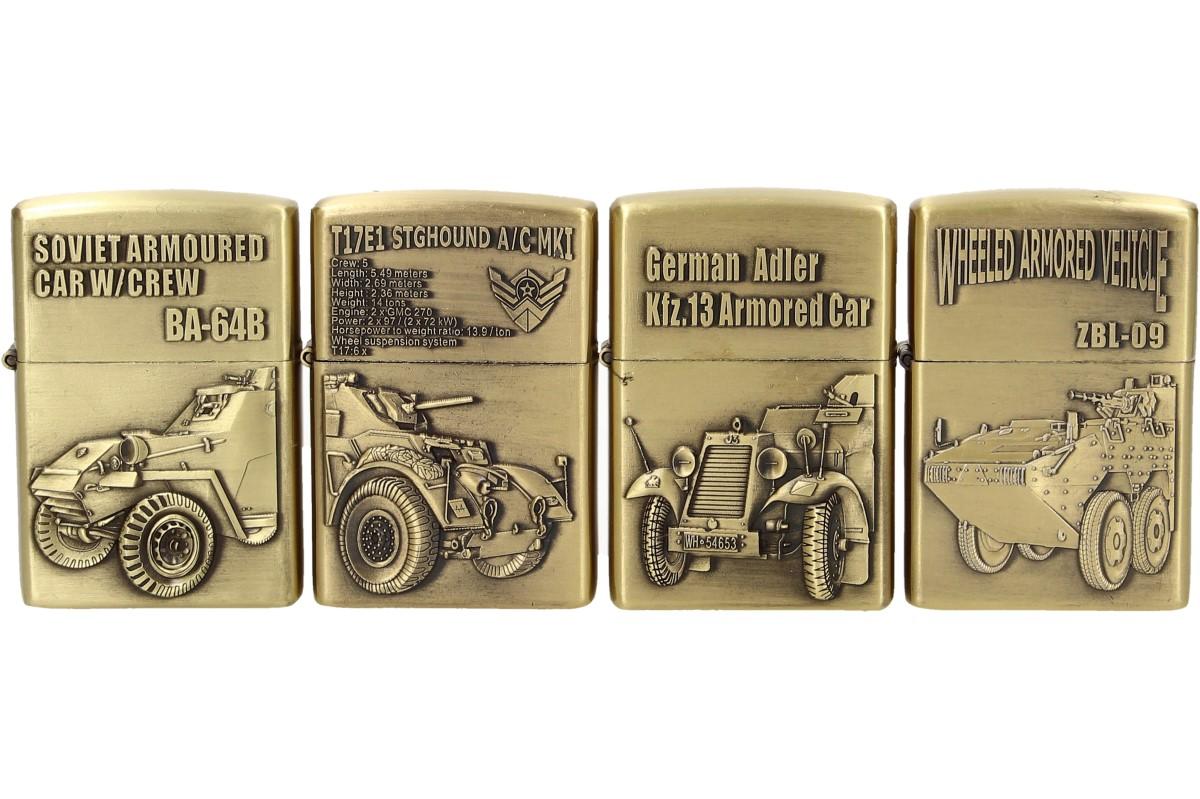 Zapalovače 4 ks - Válečné vozy jsou kvalitní a zajímavé zapalovače navrženy z ušlechtilé oceli s krásnou rytinou motivů válečných vozů. Ideální jako dárek pro milovníky historie. S těmito zapalovači uděláte zaručeně dojem na své okolí i rodinu. Benzinový zapalovač obsahuje kamínek a knot. Zapalovače z této sady můžete měnit dle vaší nálady nebo zapalovače darovat přátelům.
