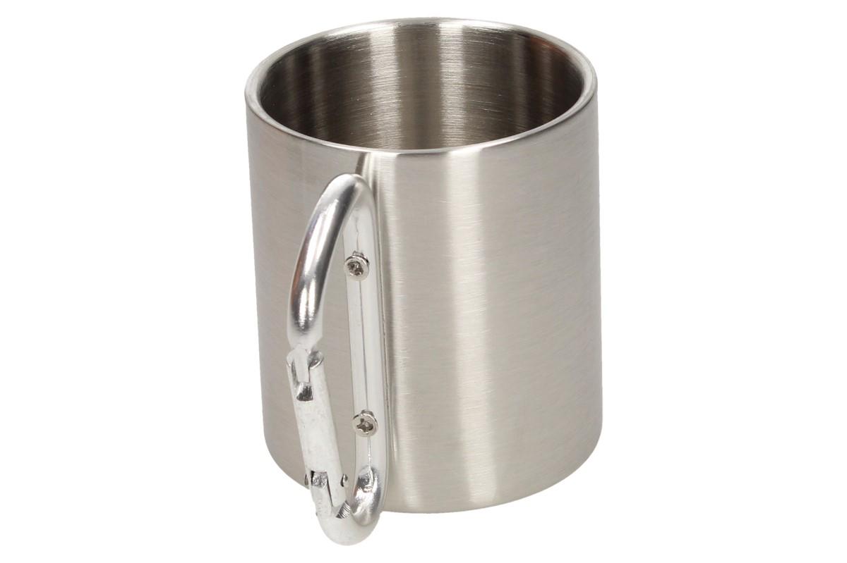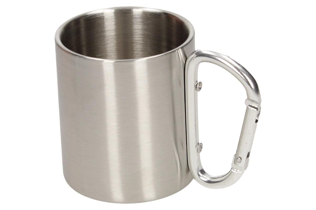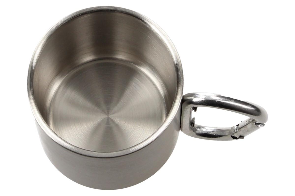 Je vyroben z nerezového materiálu, má objem 200 ml a je vybaven nerezovou karabinou pro připnutí na baťoh, krosnu, pásek apod