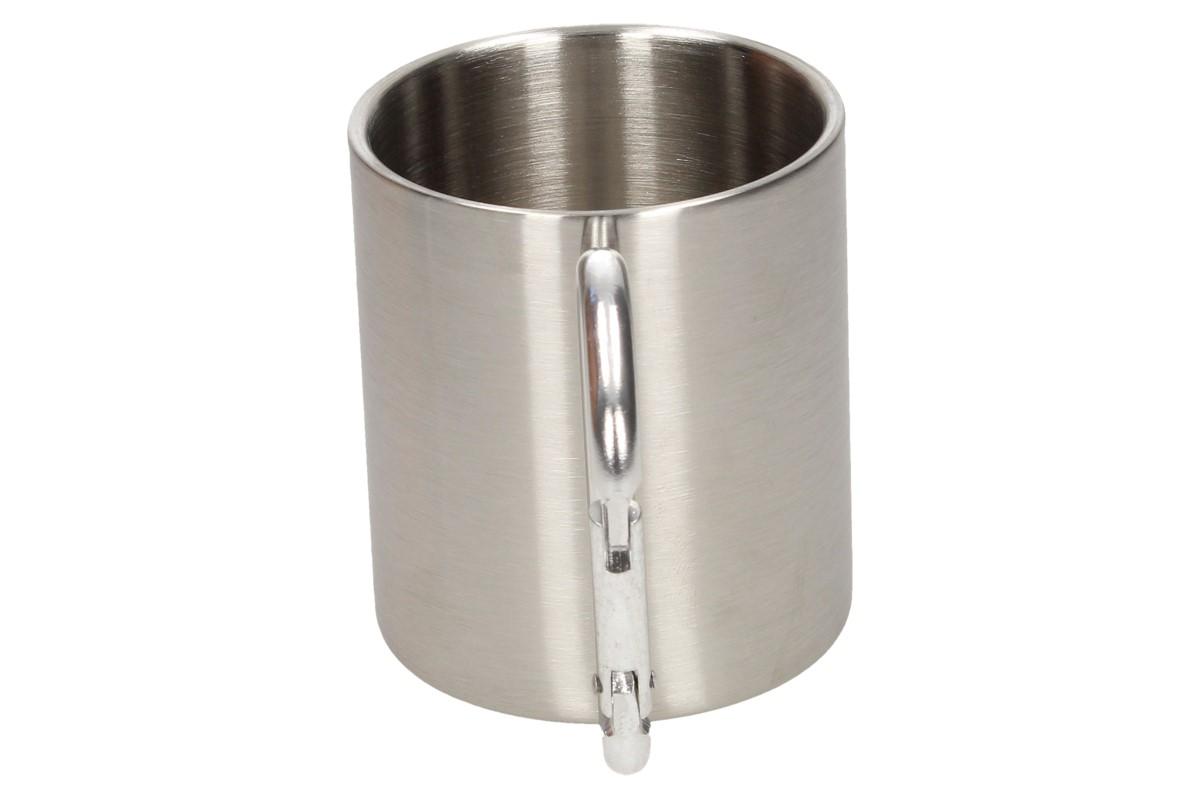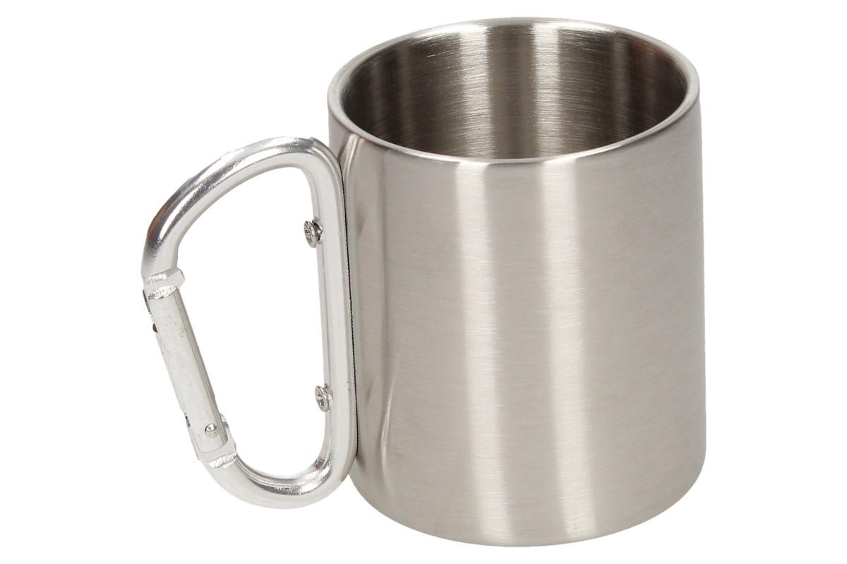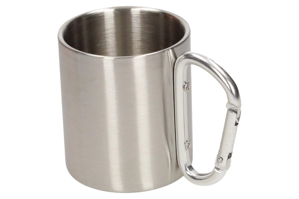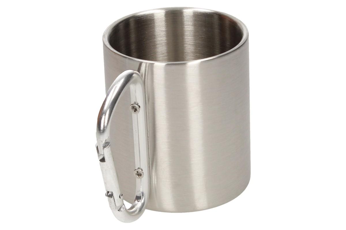 Je vyroben z nerezového materiálu, má objem 200 ml a je vybaven nerezovou karabinou pro připnutí na baťoh, krosnu, pásek apod