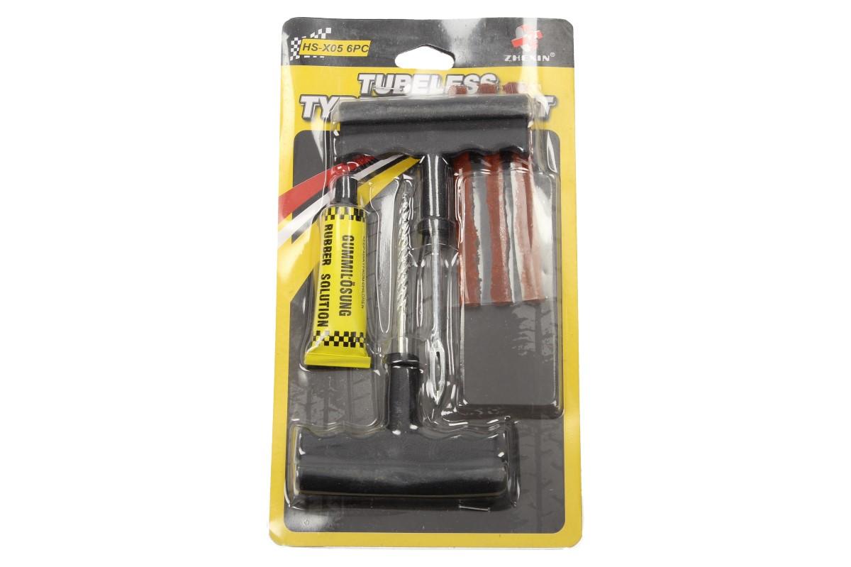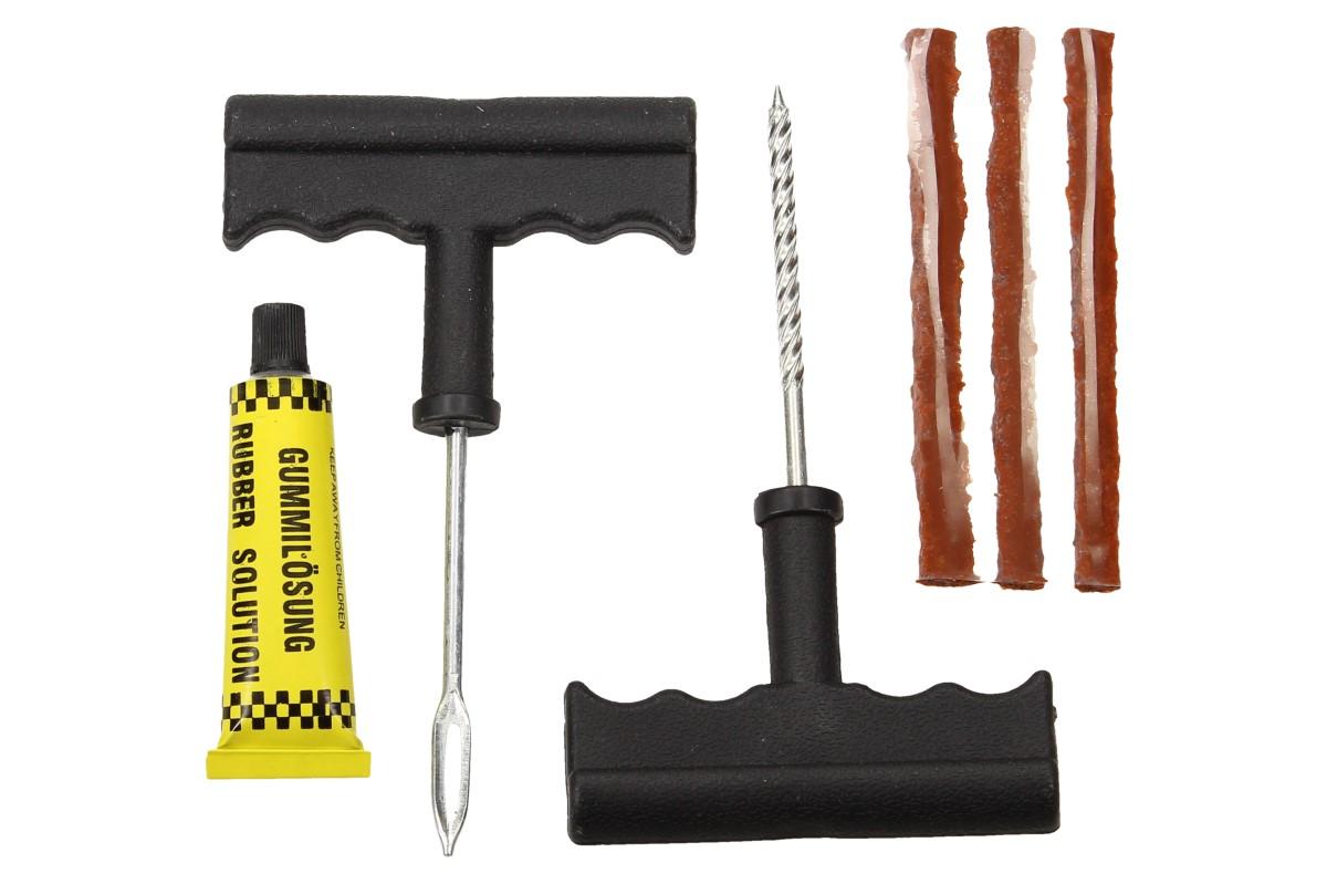 Díky sadě na opravu bezdušových pneumatik opavíte díru hravě a rychle. Sada obsahuje vrták, dloubák, lepidlo a zalepovací hmotu