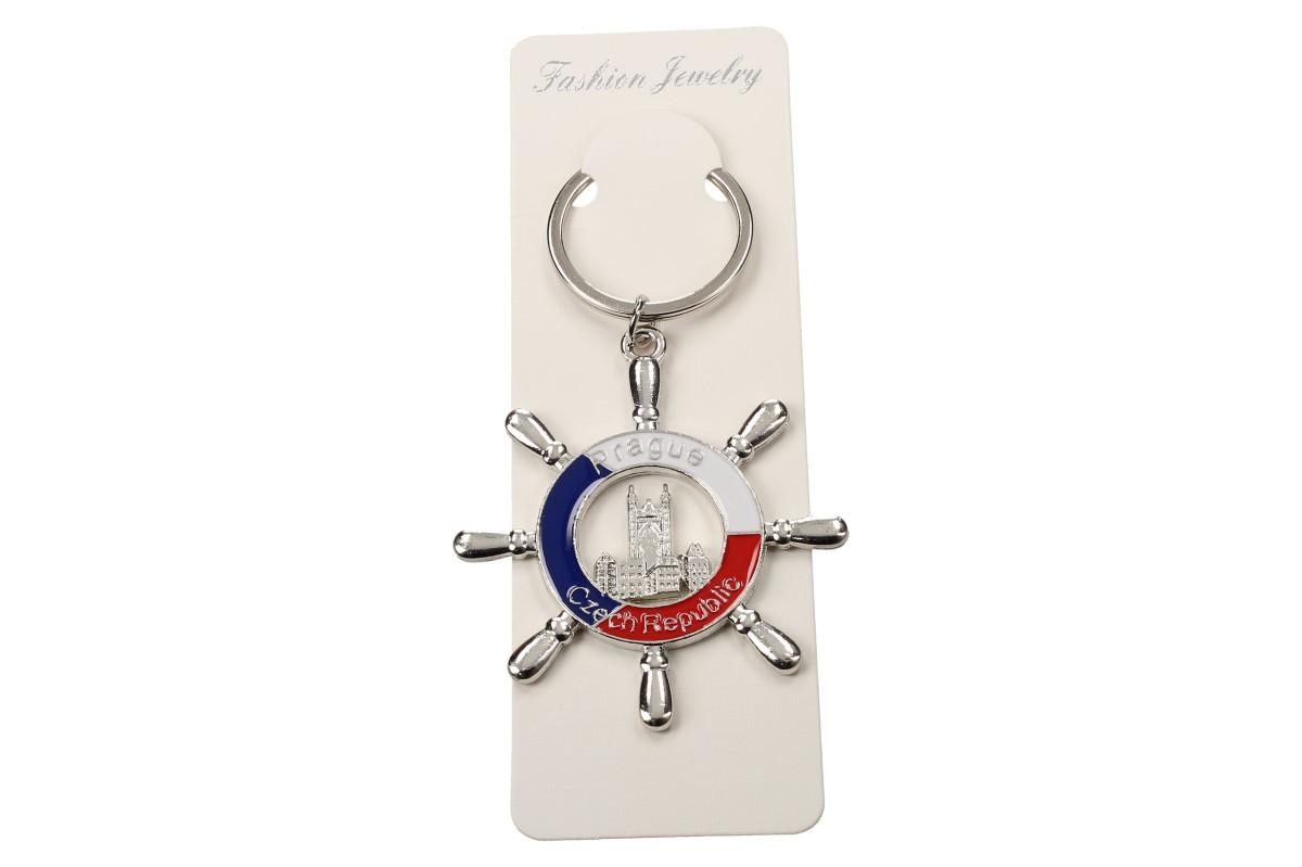 Klíčenka s kormidlem a vlajkou ČR - Zajímavá a originální, významná klíčenka, která je ideální na zpestření vašich klíčů nebo kabelky a batohu. Klíčenka je vhodná i jako dárek pro vaše kamarády, blízké a rodinu. Zaručeně potěší. Klíčenka ma zajímavý design stříbrné barvy, s vlajkou ČR, nápisem Prague a Czech Republic