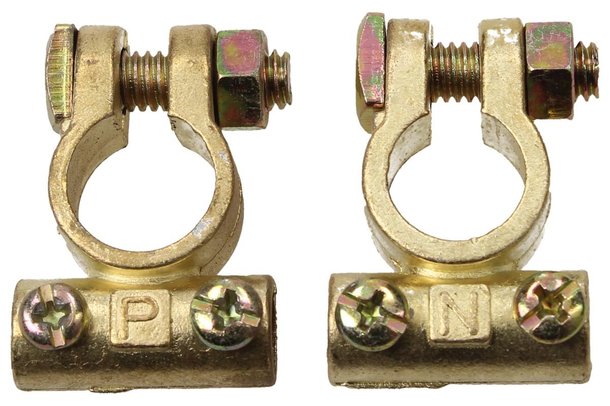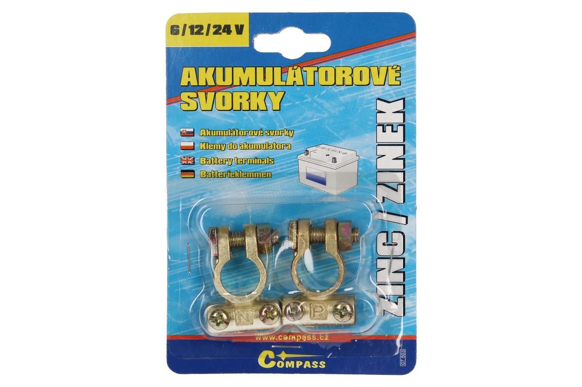 Akumulátorové svorky (+ a -) pro připojení startovacího akumulátoru k záložnímu zdroji. Vhodné pro zdroje zakončené kabelovýmm okem, při použití běžného akumulátoru.