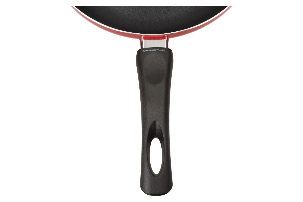 Pánev Jagoda 26 cm je nepostradatelná a praktická hliníková pánvička, na které je radost připravovat pokrmy. Hliníkové stěny se rovnoměrně nahřívají a nic se nepřipaluje díky nepřilnavému povrchu. Stabilní a ergonomická rukojeť se nenahřívá a snadno se tak s pánvičkou manipuluje. Pro čištění nepoužívat ostré nebo kovové předměty, doporučuje se používat dřevěné nebo plastové kuchyňské potřeby. Je vhodná pro všechny typy vařičů.