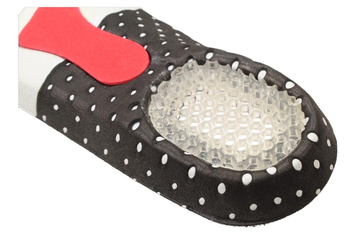 Vložky do bot se silikonovou podložkou paty dokonale podpoří nožní klenbu a rozloží tlak na celou podložku. Vložky jsou navrženy tak aby tlumily nárazy při chůzi nebo během každodenních činností. V patě se nachází gel, který tlumí nárazy na patní kost a zároveň odlehčí přetěžované přednoží. Povrch je potažen antibakteriální tkaninou takže už žádný trapas, když se vyzujete. Ortopedické vložky do bot efektivně tlumí bolesti nohou, chodidel a kolen. Tyto ortopedické vložky vytvoří ve vašich botách opravdový komfort.