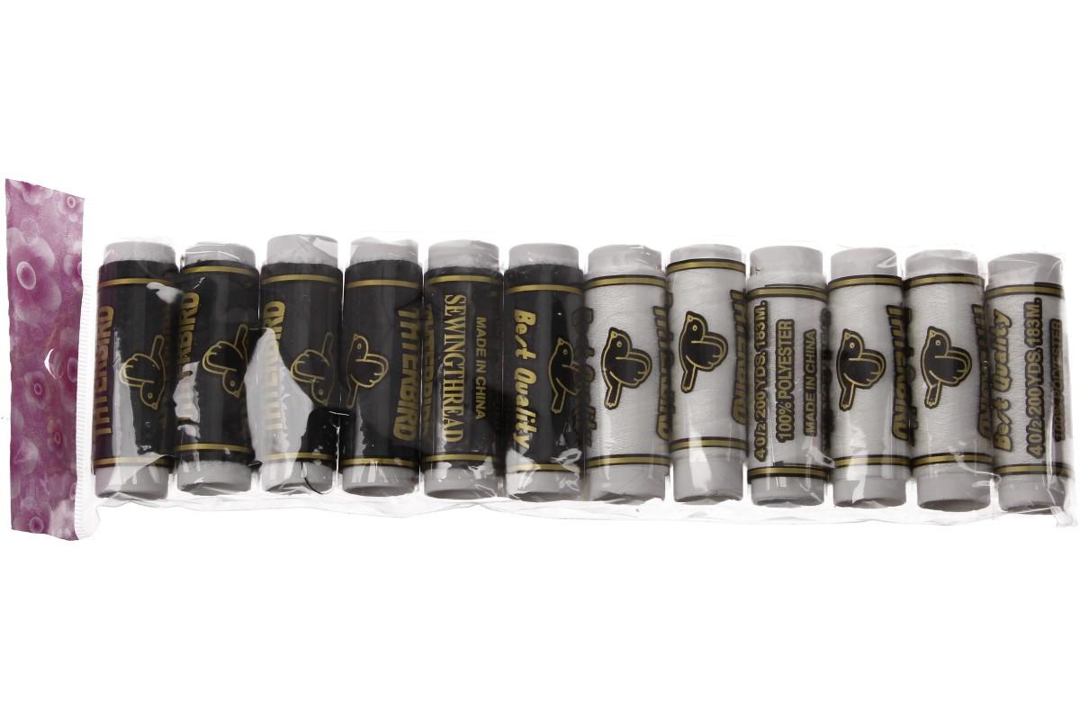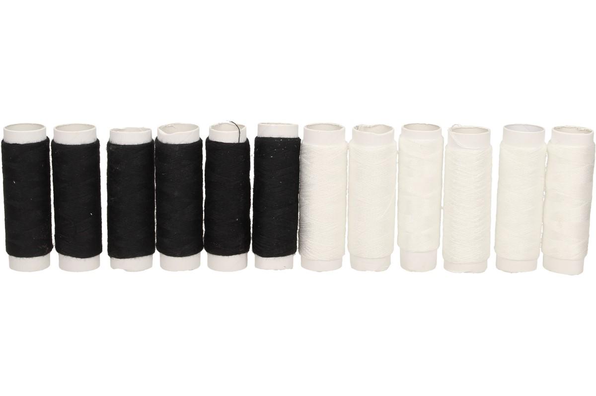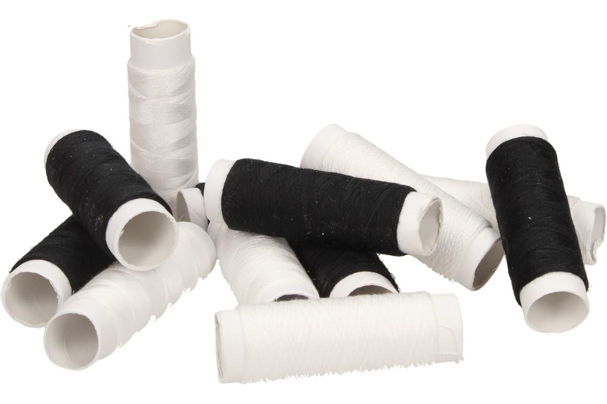 Sada nití 12 ks černá-bílá, jsou kvalitní nitě, které jsou určeny pro mnohostranné použití. Speciální šicí doúprava umožňuje šití bez přetrhů na šicích strojích. Vynikají vysokou pevností, jsou stálobarevné, odolné vůči oděru, bakteriím a plísním.