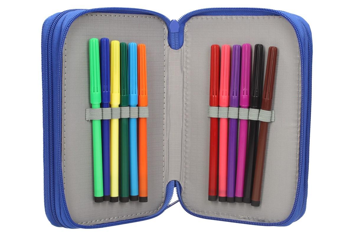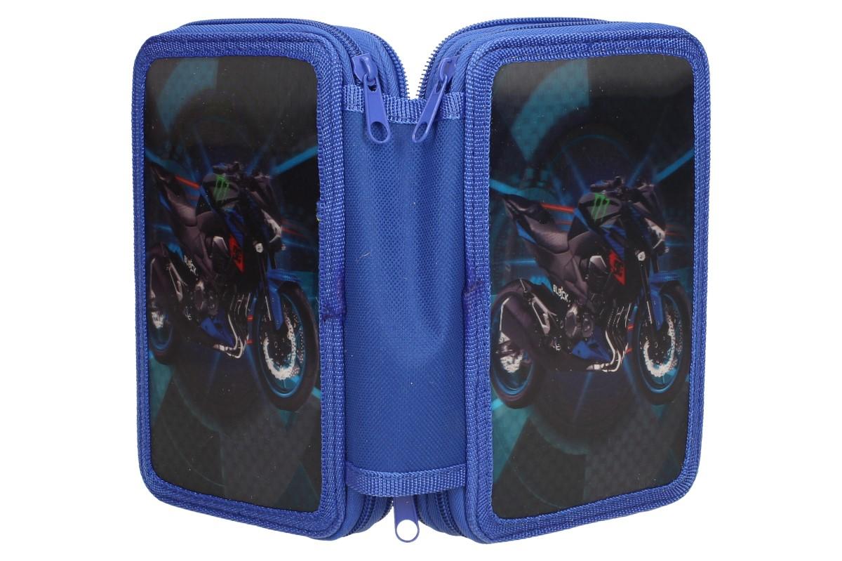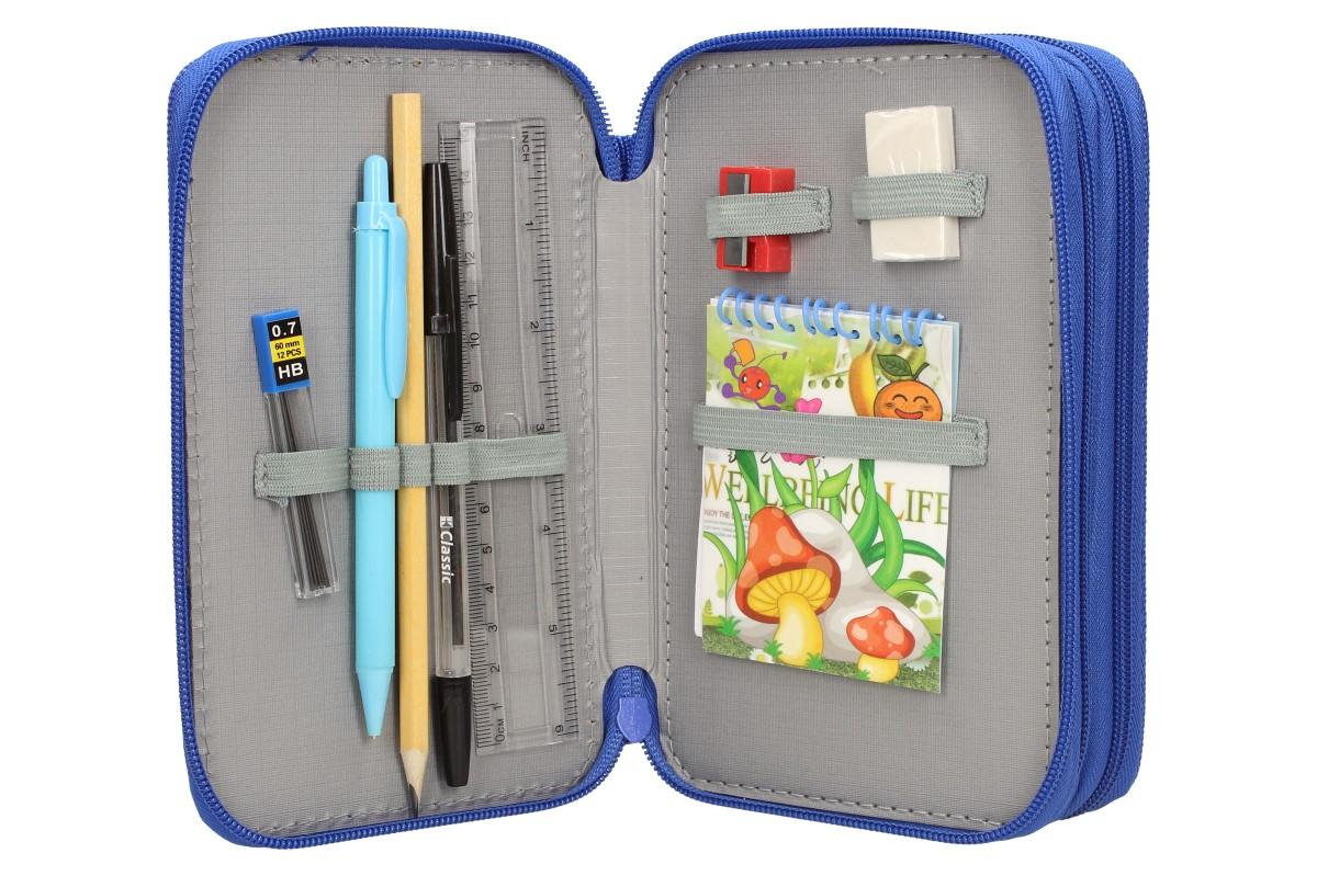 Kompletně vybavený školní penál s 3D obrázkem sportovního auta nebo motorky potěší každého školáka. Třípatrový penál má zavírání na zip a obsahuje kompletní 32 dílnou výbavu, kterou žák bude ve škole potřebovat. V penálu naleznete tuhy do pentilky, pentilku, černou propisku, pravítko, ořezávátko, gumu, malý bloček který může posloužit jako úkolníček, 12 fixů základních barev a 12 pastelek. Když škola zavolá, žádný batoh nebo taška se bez této pomůcky neobejde.
