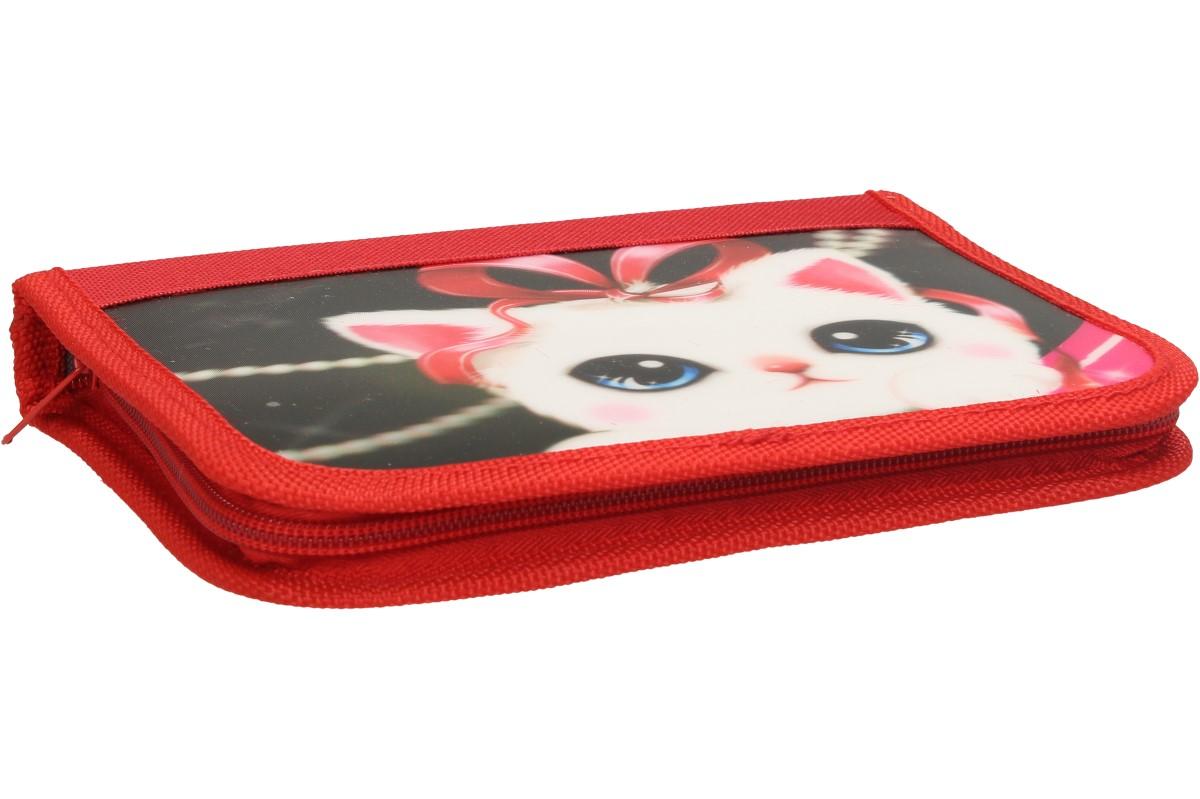 Kompletně vybavený školní penál s 3D obrázkem kočky potěší každého školáka. Jednopatrový penál má zavírání na zip a obsahuje kompletní 11ti dílnou výbavu, kterou žák bude ve škole potřebovat. V penálu naleznete pravítko, ořezávátko, gumu, tužku, kuličkové pero a 6 pastelek. Když škola zavolá, žádný batoh nebo taška se bez této pomůcky neobejde.