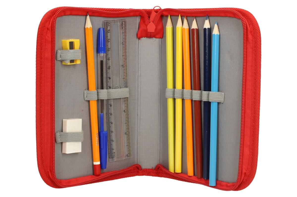 - Obsahuje: pravítko, ořezávátko, gumu, tužku, kuličkové pero, 6 pastelek.