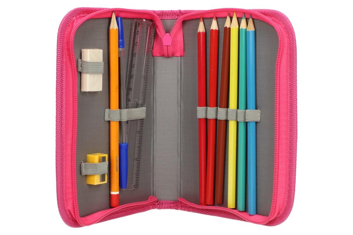- Obsahuje: pravítko, ořezávátko, gumu, tužku, kuličkové pero, 6 pastelek.