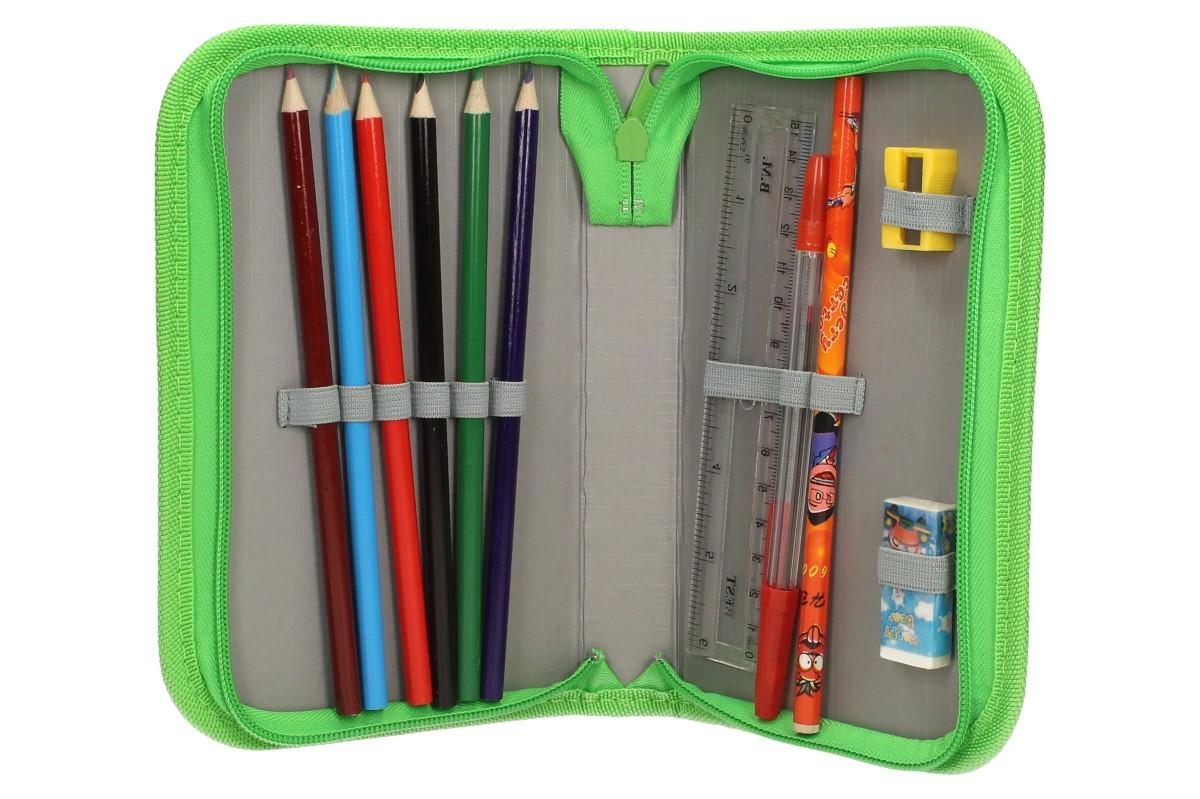 Kompletně vybavený školní penál s obrázkem potěší každého školáka. Jednopatrový penál má zavírání na zip a obsahuje kompletní 11ti dílnou výbavu, kterou žák bude ve škole potřebovat. V penálu naleznete pravítko, ořezávátko, gumu, tužku, kuličkové pero a 6 pastelek. Když škola zavolá, žádný batoh nebo taška se bez této pomůcky neobejde.